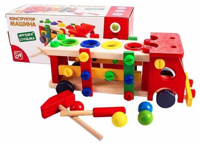 АНДАНТЕ Стучалка-конструктор Машинка "Шарики". Развивающие деревянные игрушки для детей, игрушечные машинки