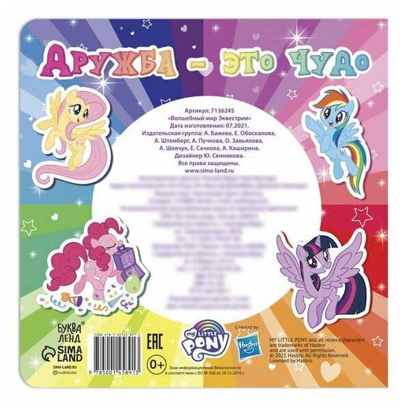 Hasbro Магнитная книга с заданиями "Волшебный мир Эквестрии", 8 стр 26 магнитов, My Little Pony