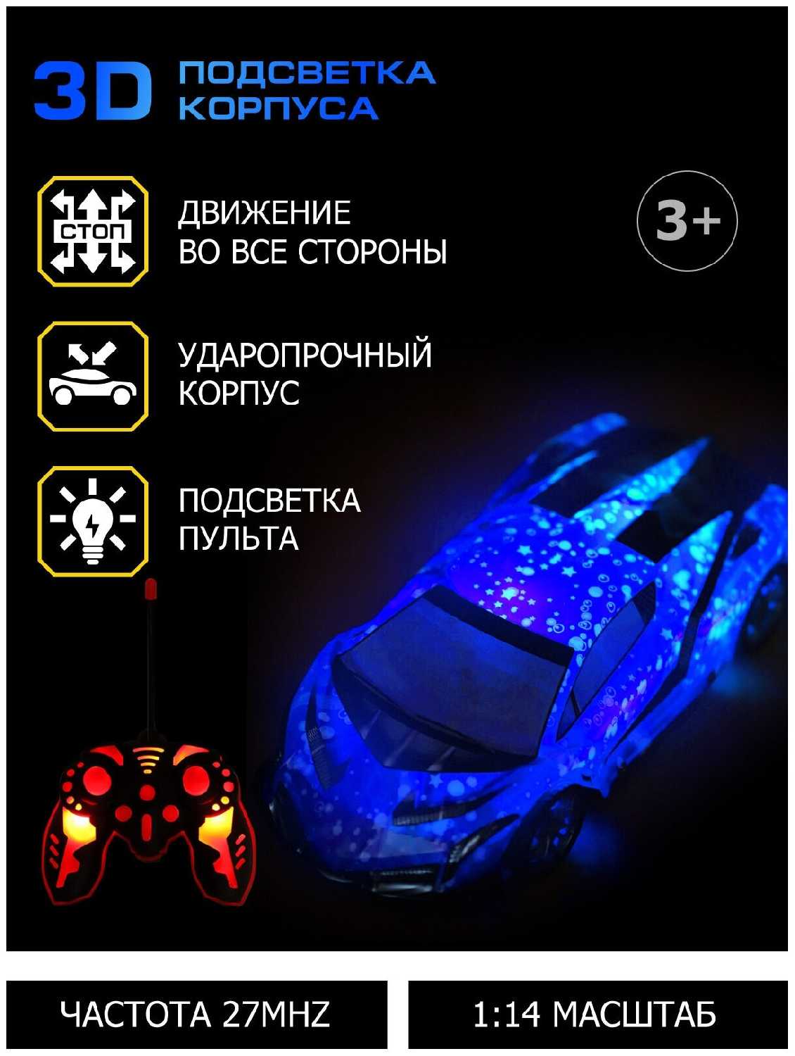 5.8/10 балловAutodrive с 3D подсветкой корпуса/пульта, для детей, для мальчиков, 4 канала, М 1:14, пульт управления