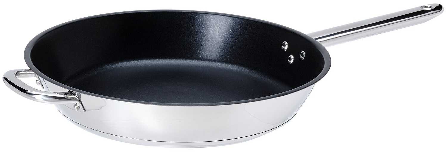 - + Большая сковорода, подходит для любого вида плит,очень качественная нержавейка с антипригарным покрытием, брали на подарки и себе. Подарили родственникам, своей пока не пользовались. Думаю должна хорошо отмываться, т. к. есть кастрюли из нержавейки они служат много много лет.
