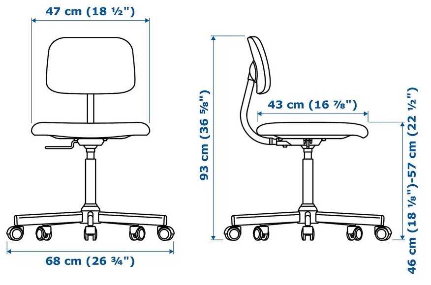 - Ширина сиденья 42 см и глубина 38 см позволяют задвигать кресло под столы с высотой столешницы 72-75 см.