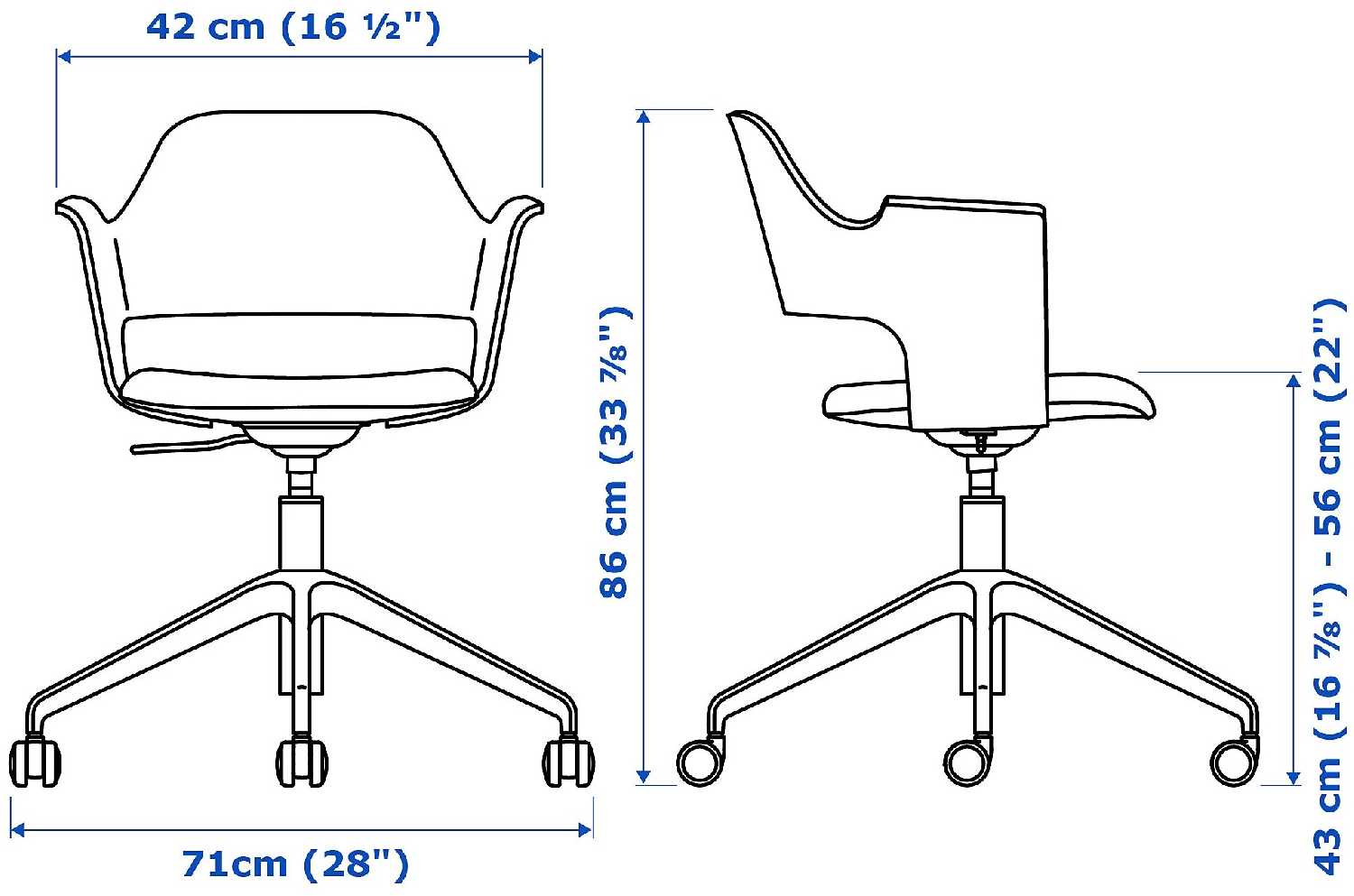- ширина сиденья: 42 см