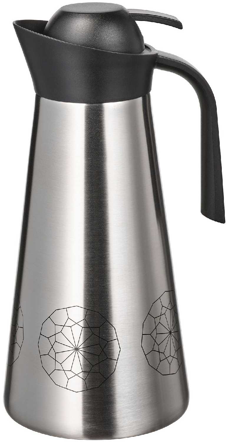 - + Отличный термос-кувшин. Хорошо держит температуру как горячие, так и холодные напитки, на 12 часов. Покупала в компанию к термосу этой же модели, но объемом 1,5л.