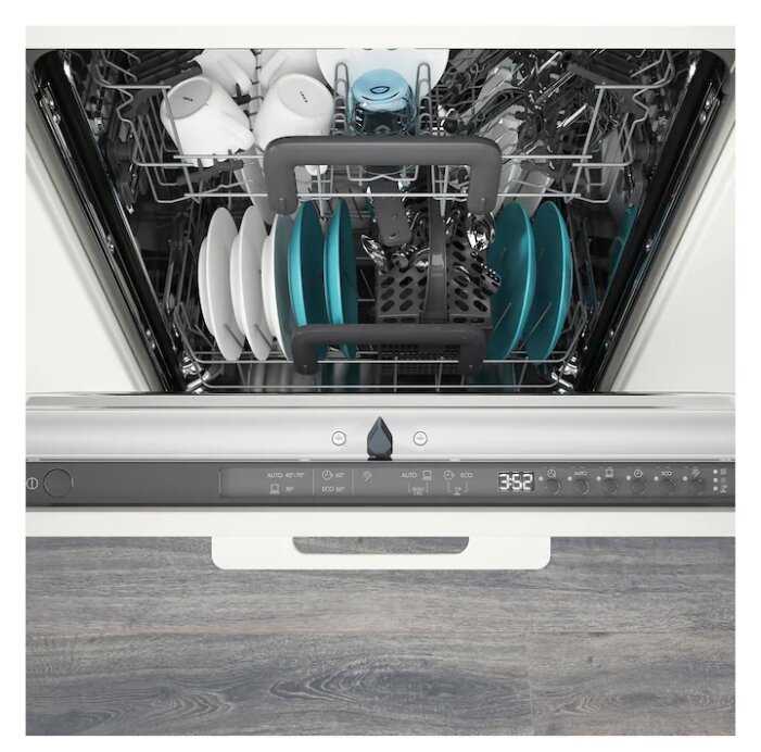 - + Есть настраиваемые программы, настраиваемая жесткость воды, луч активной мойки, отложенный старт, предополаскивание. Простота в управлении.