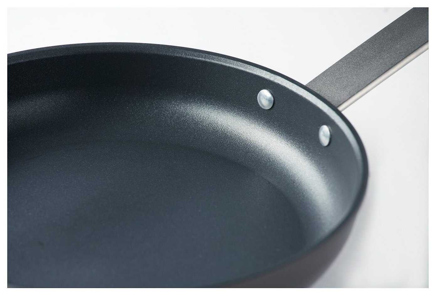 - + 1) Хватает лет на пять при умеренном использовании (покрытие от DuPont – Teflon Professional). Есть опыт с аналогичной сковородой меньшего диаметра.