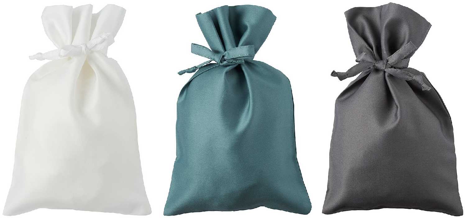 Набор включает 3 мешочка разных цветов (обычно нейтральных оттенков). Покупатели отмечают, что ранее палитра была разнообразнее, но текущие варианты легко вписываются в интерьер. Все мешочки в наборе идентичны по размеру. -