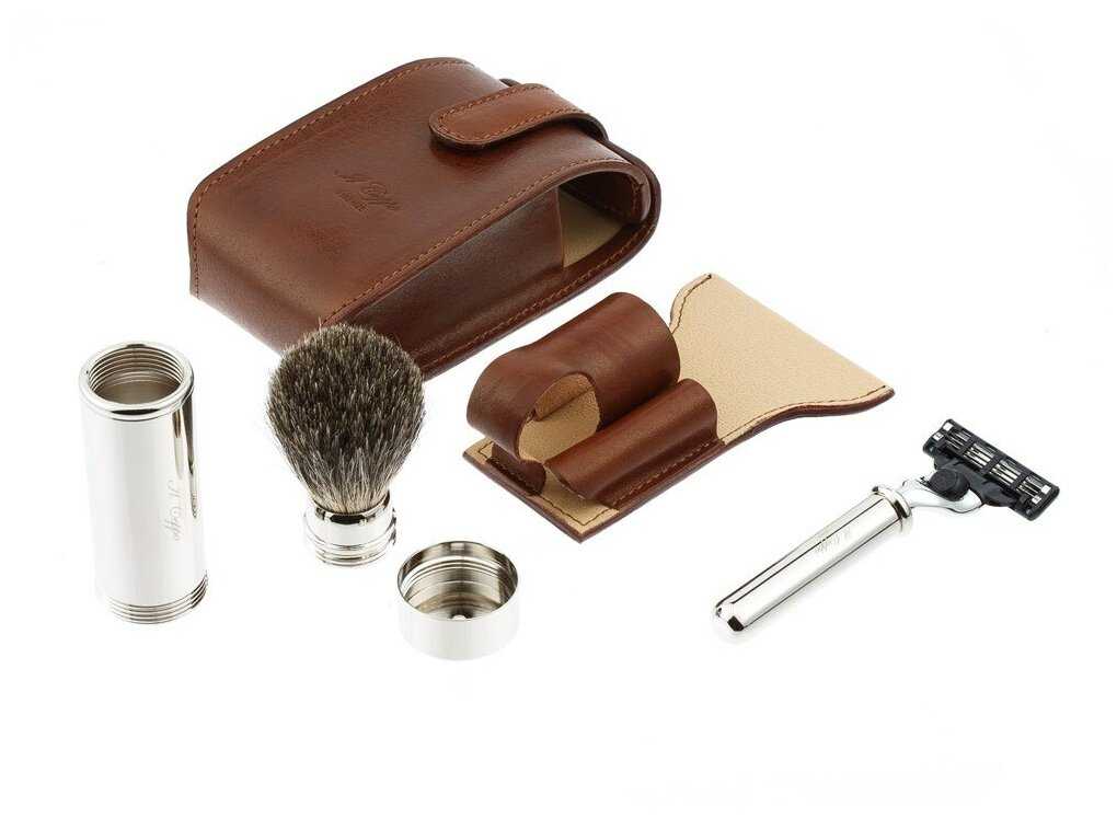 | Дополнительная информация : | компактные размеры и лёгкий вес, дорожный чехол изготовлен вручную из натуральной кожи стойкой к износу, складной помазок в тубусе из никелированной латуни, эргономичная форма ручки бритвенного станка |