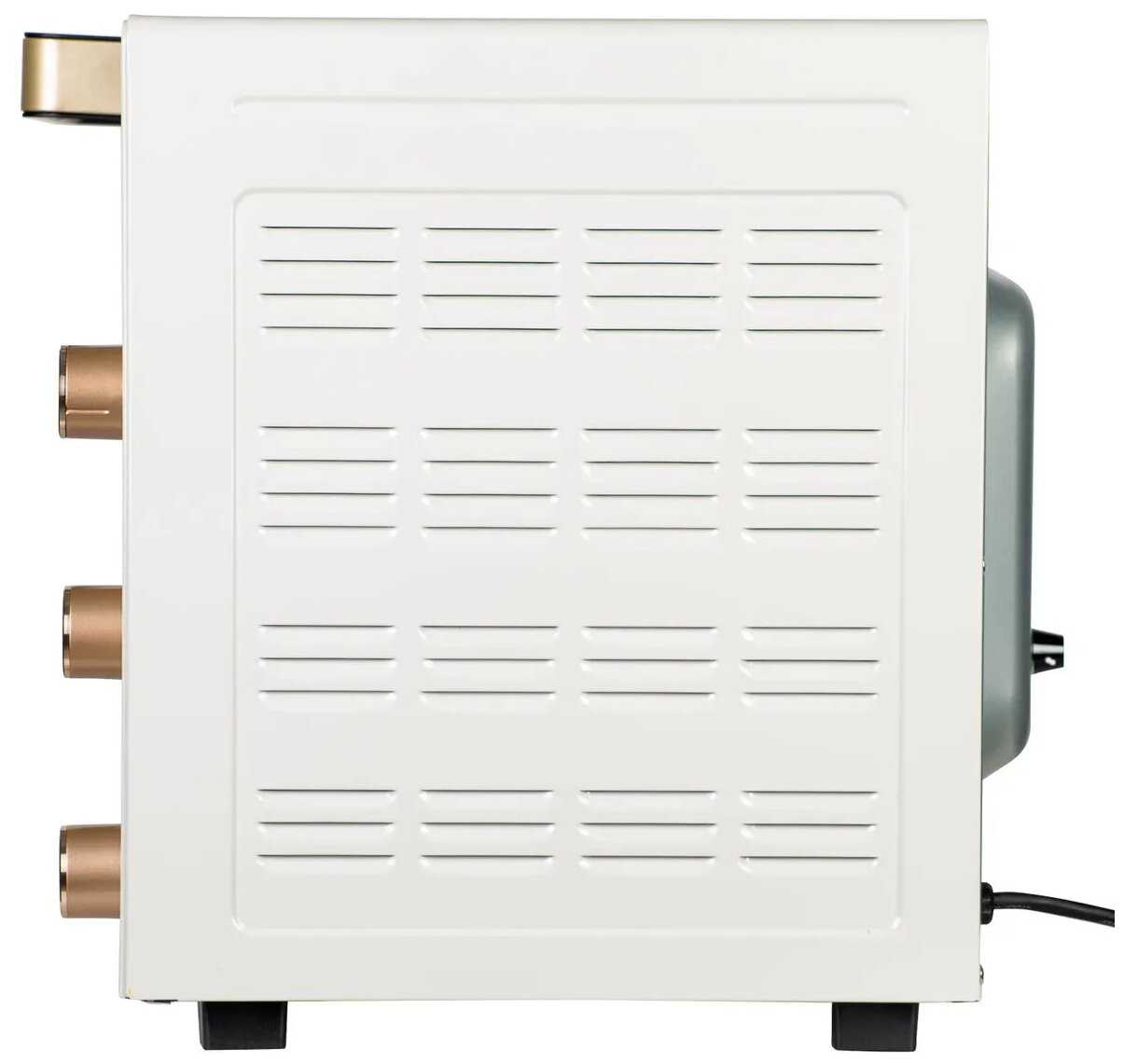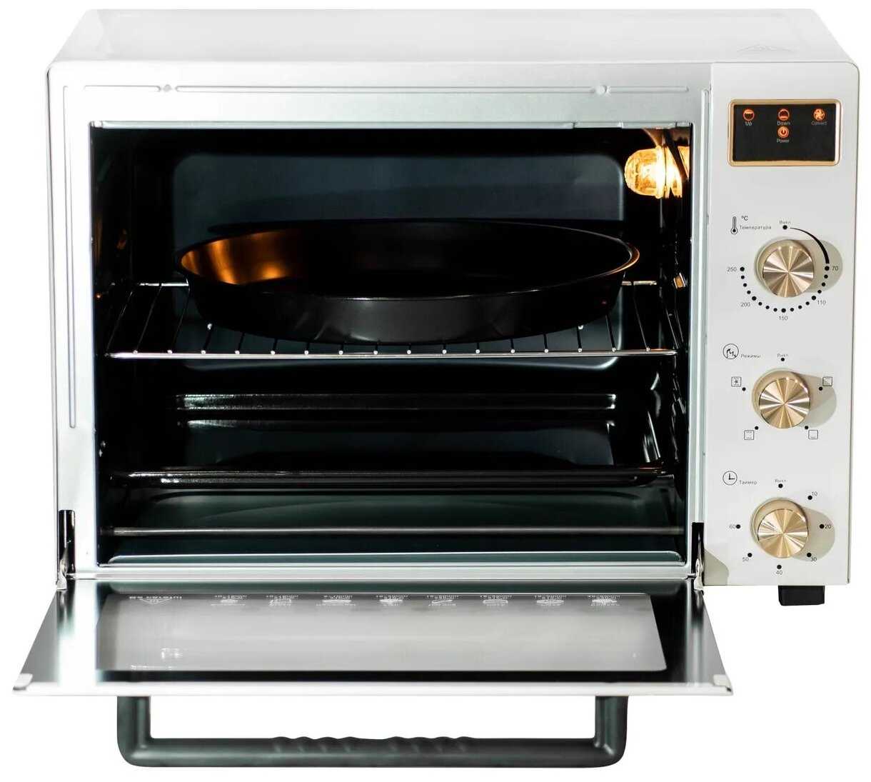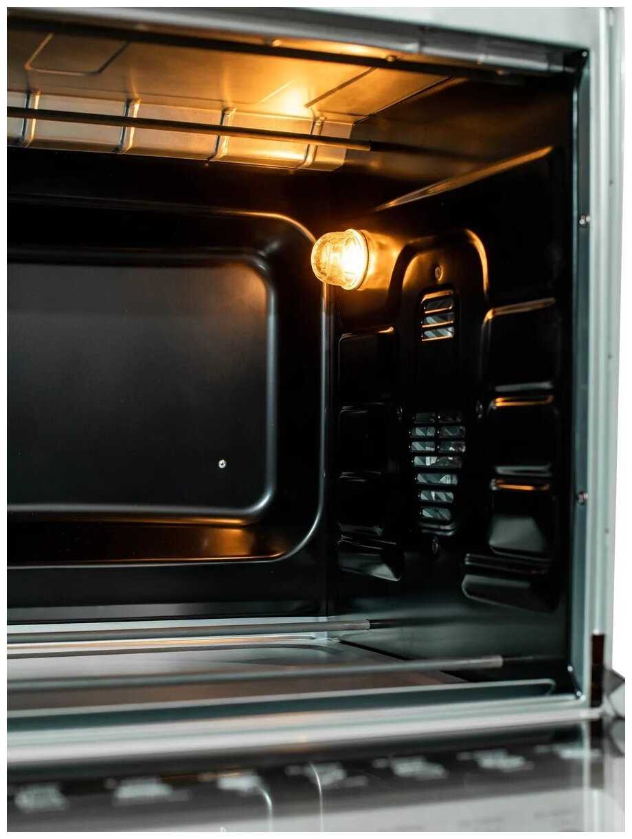 - Конвекционный вентилятор работает тихо первые 30 минут, что не мешает в небольших кухнях.