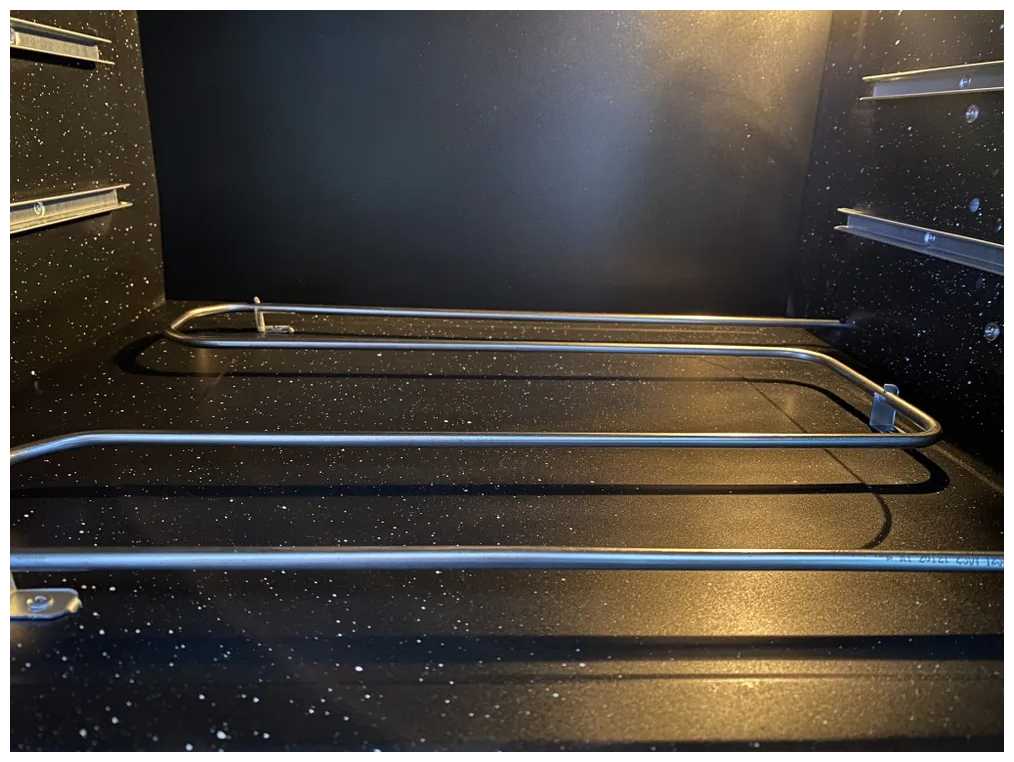 Большая и вместительная, 3 уровня полок. Печет хорошо,ничего не пригорает. Есть подсветка,удобно наблюдать за процессом,не открывая ее. - - Еще бы добавить один уровень температуры 220-230 градусов.
