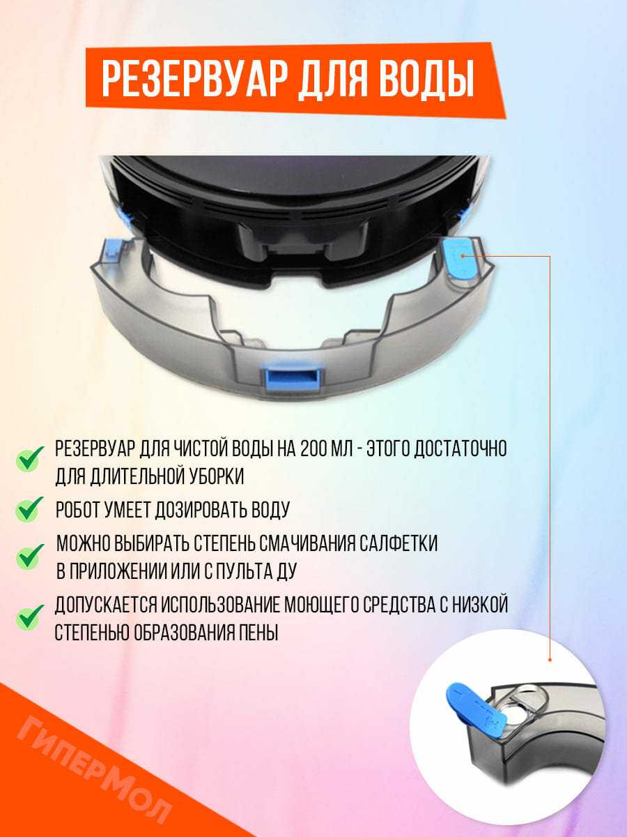 - - Не понятно зачем сделали бокс для пыли на 600 мл. а для воды всего 200!!!! За эти полтора часа ,два раза доливал воду. На самой маленькой регулировки подачи воды ( мягкая) И тряпочка только одна.