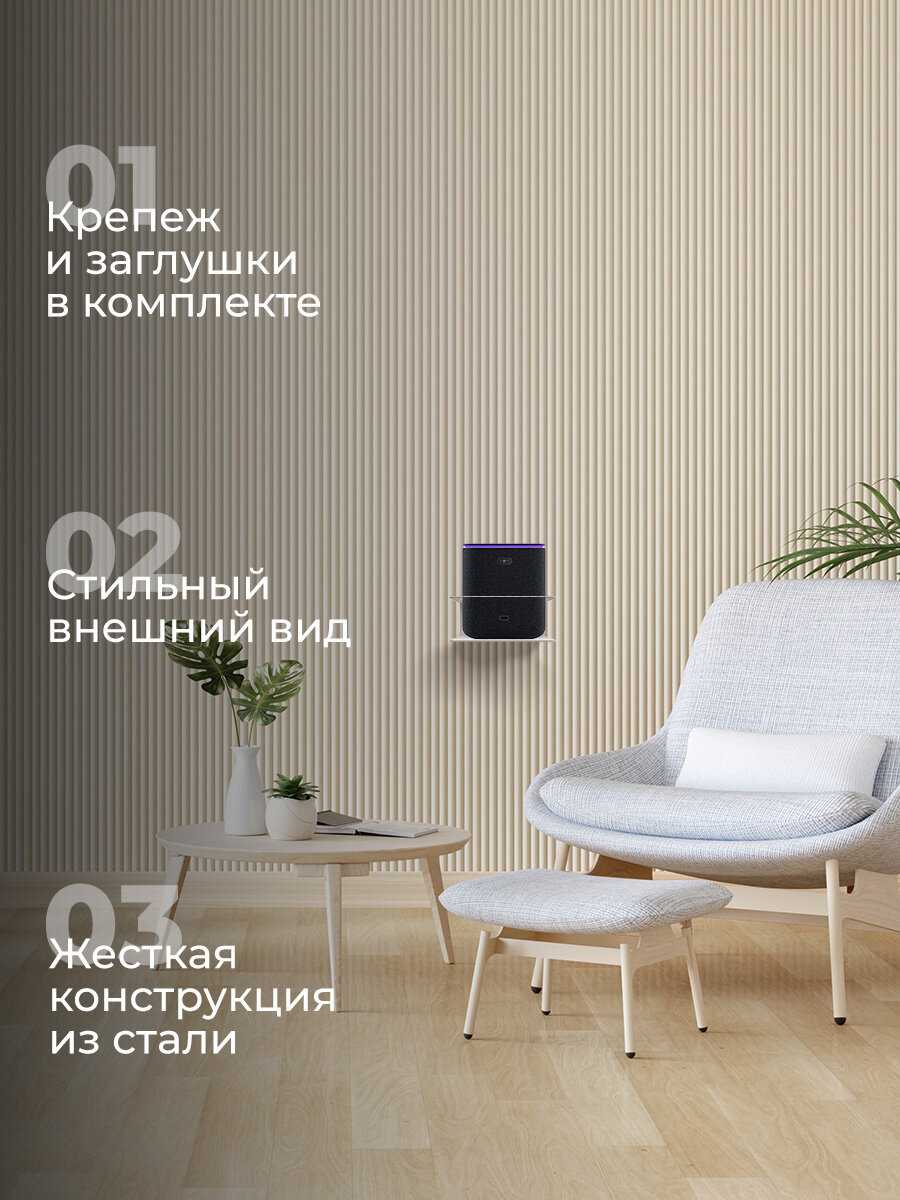 - + Надежная конструкция для крепления колонки Алиса2 к стене