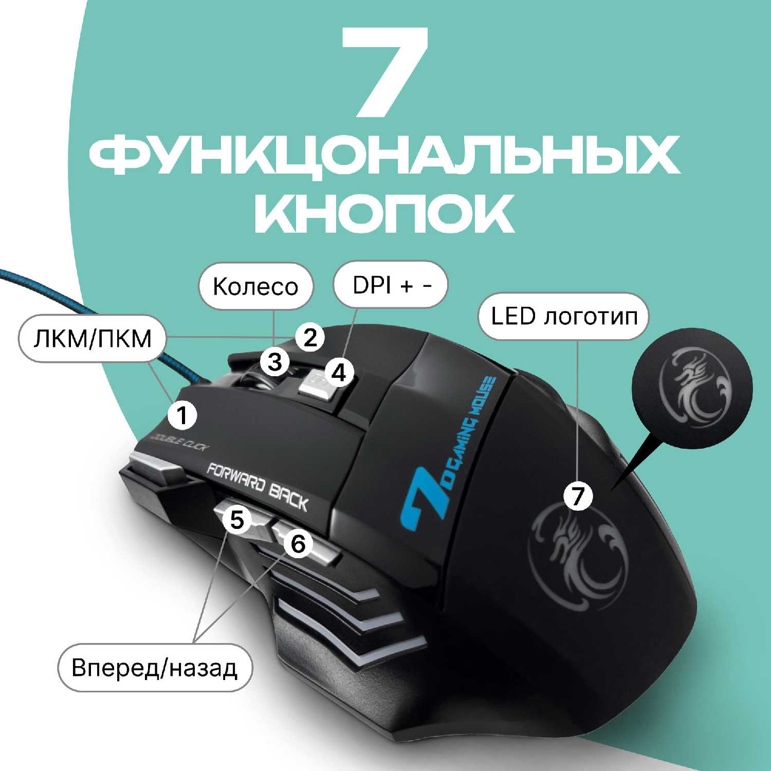 - Переключение DPI позволяет адаптировать скорость курсора для игр (резкий режим) и работы (плавный).