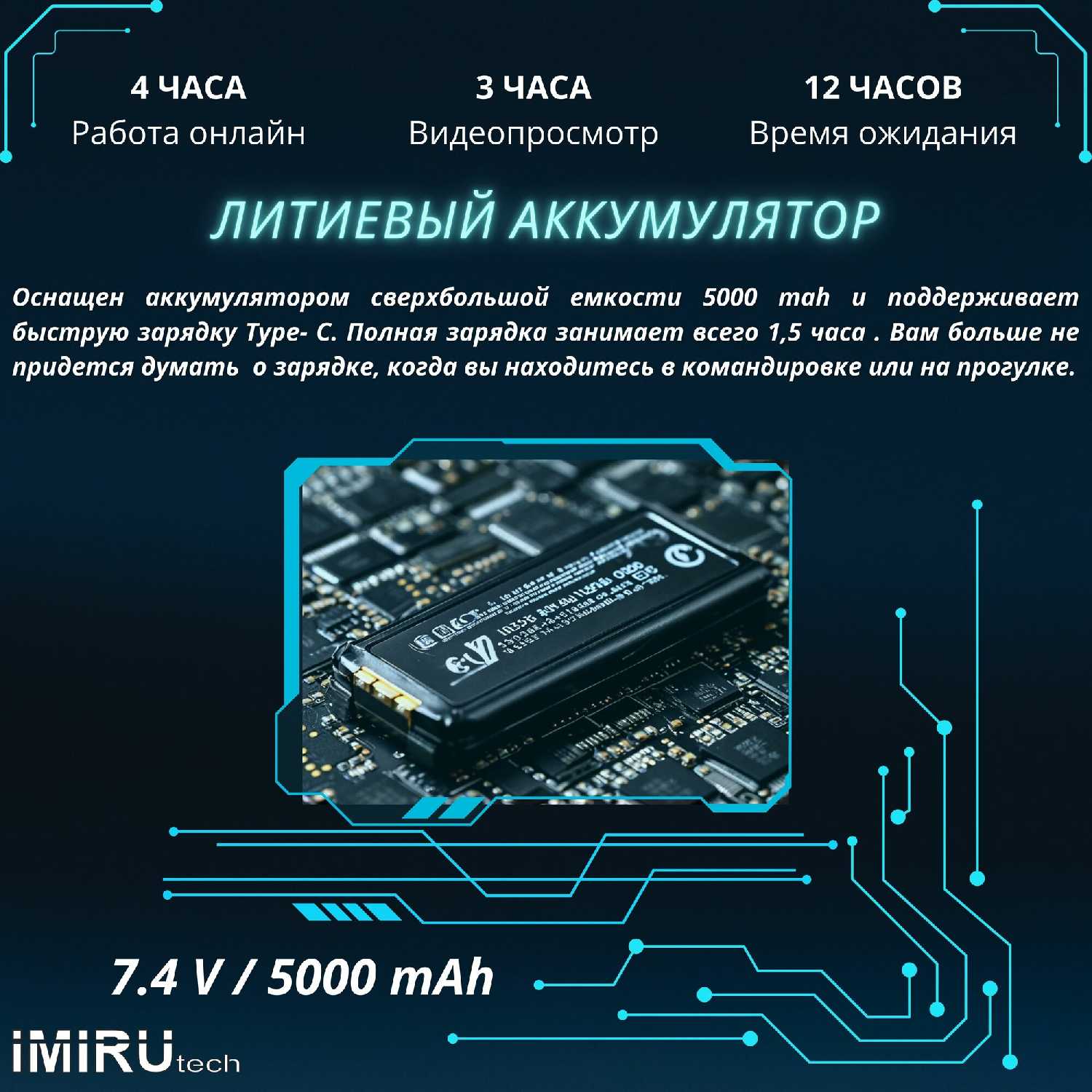 - Емкость аккумулятора: 5000 мА·ч