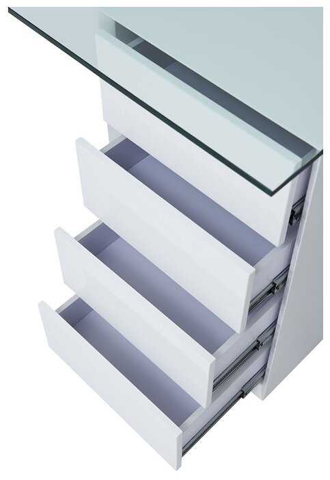 Купил недавно, стол превзошел ожидания, если честно. Своей цене полностью соответствует, украшает интерьер и не загромождает его. Стекло закаленное 12 мм, вполне достаточно! Да, протирать частенько нужно, но оно того стоит, смотрится действительно красиво. Ящики без всяких торчащих ручек – все лаконично.