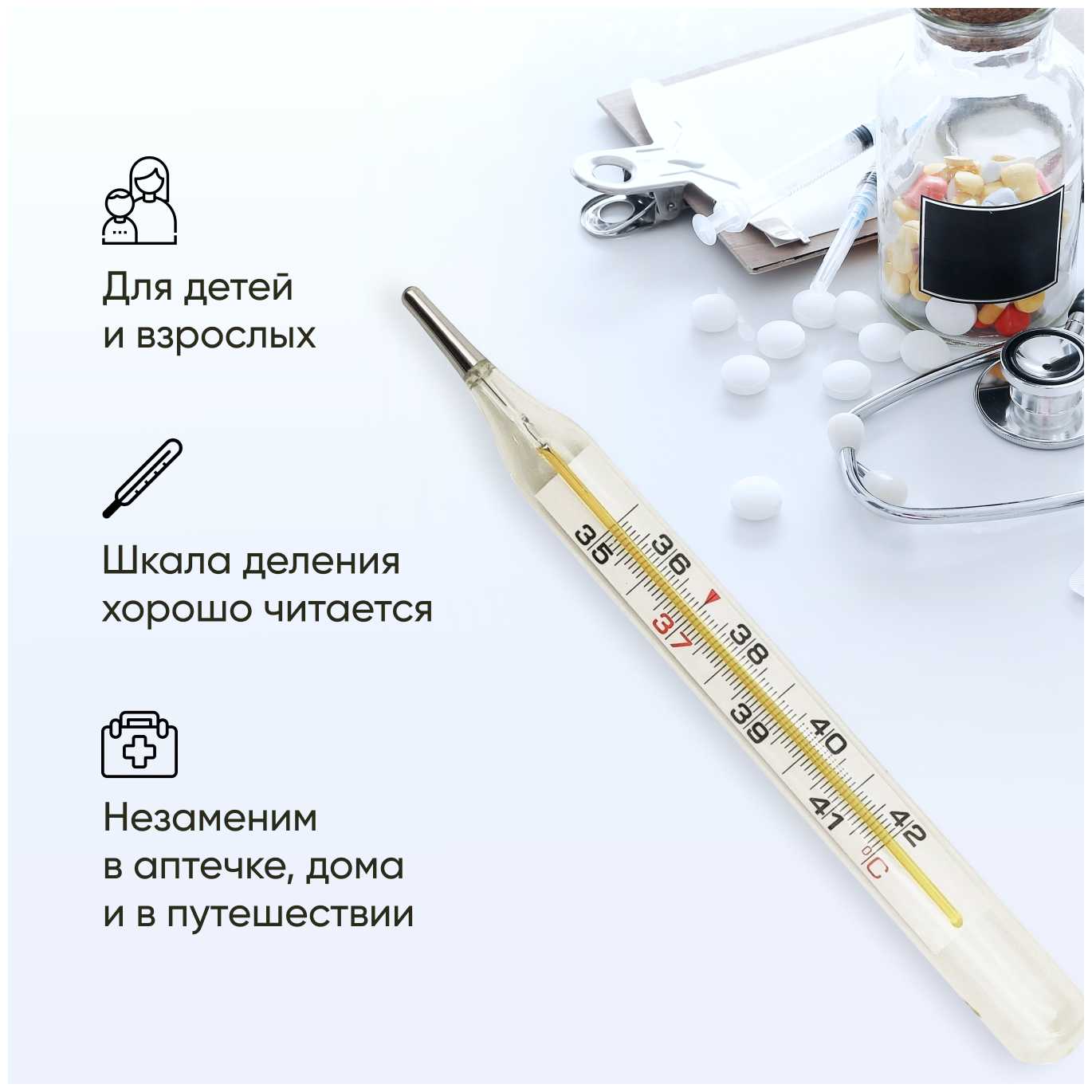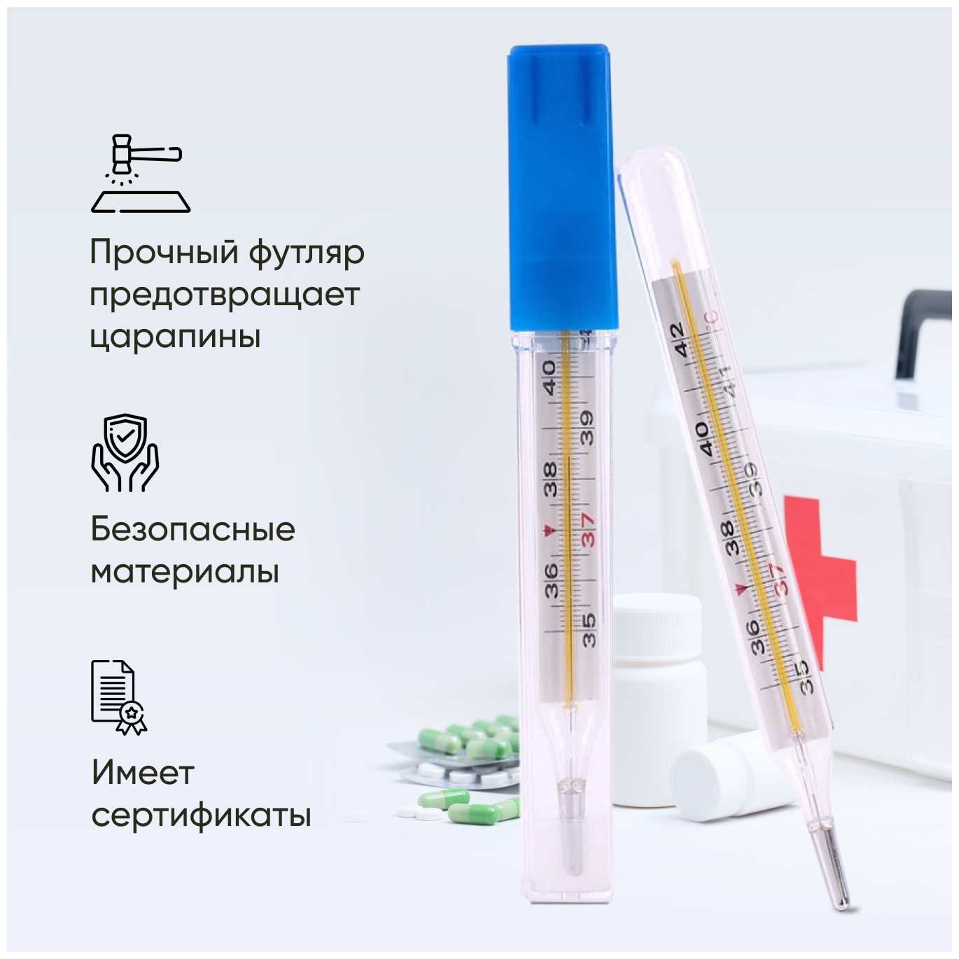 40 отзывов пользователей o Импэкс-Мед Термометр медицинский ртутный /градусник медицинский, в футляре для тела