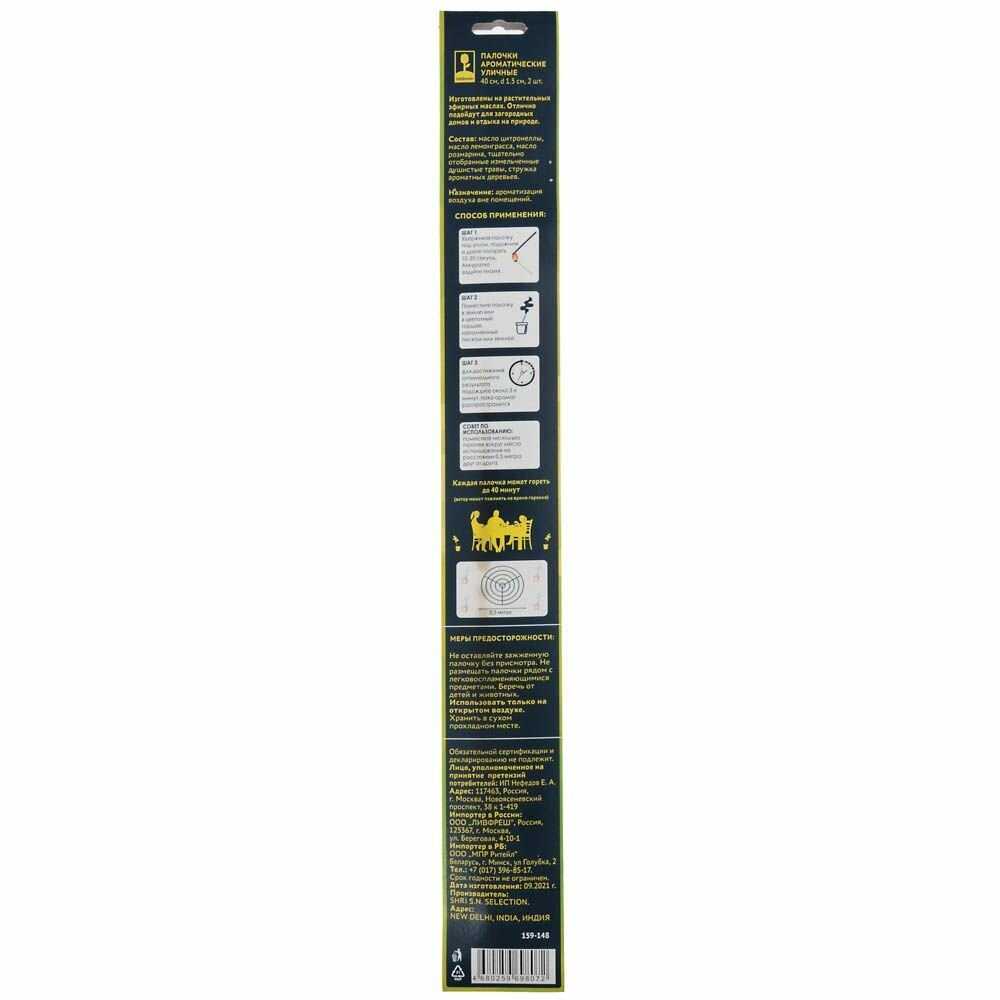 | Подробная комплектация : | • Палочки ароматические уличные (40см d1, 5см ) - 2 шт |