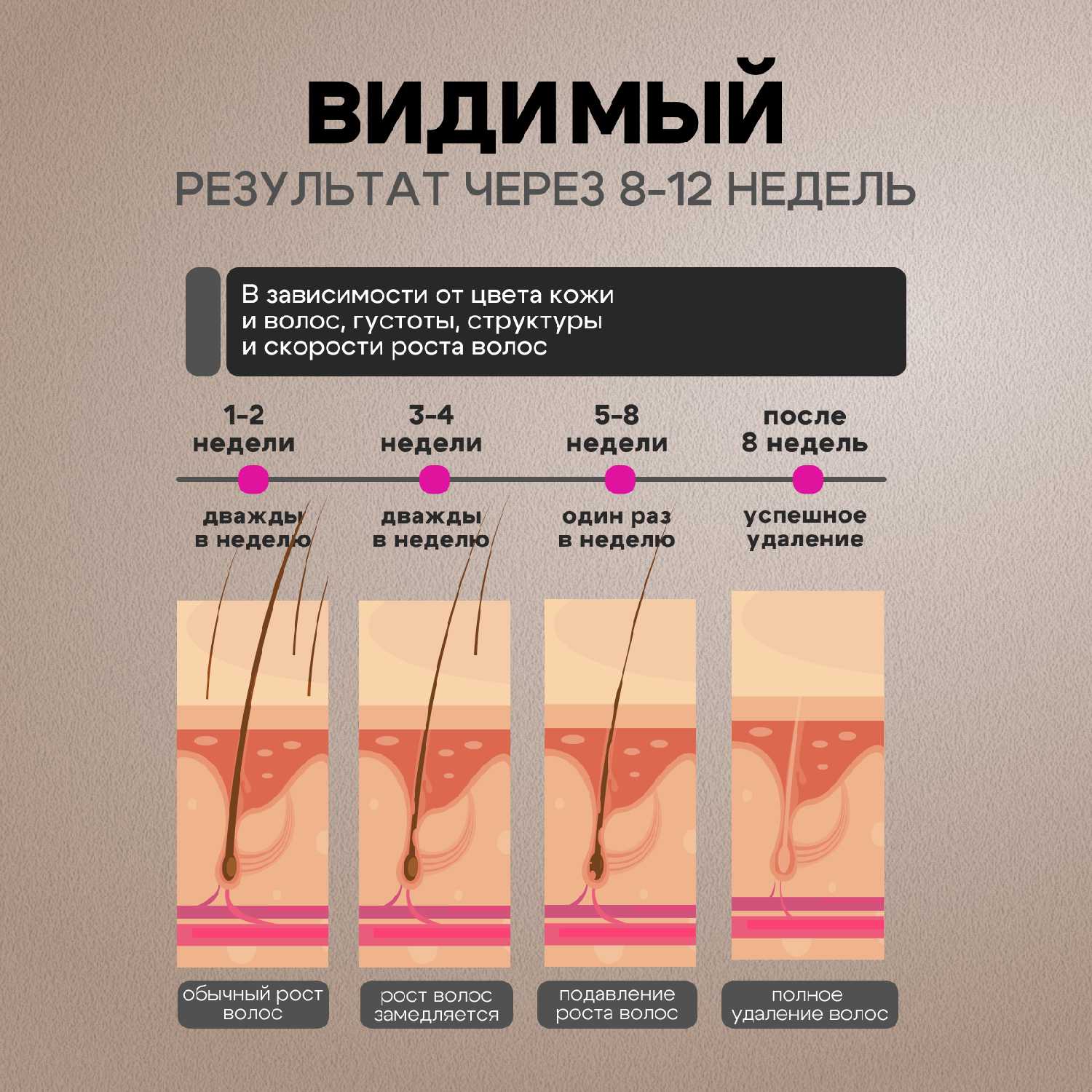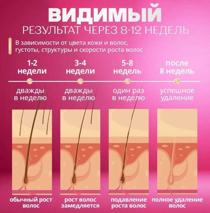 - В области бикини и на светлых волосах результат проявляется после 8+ процедур.
