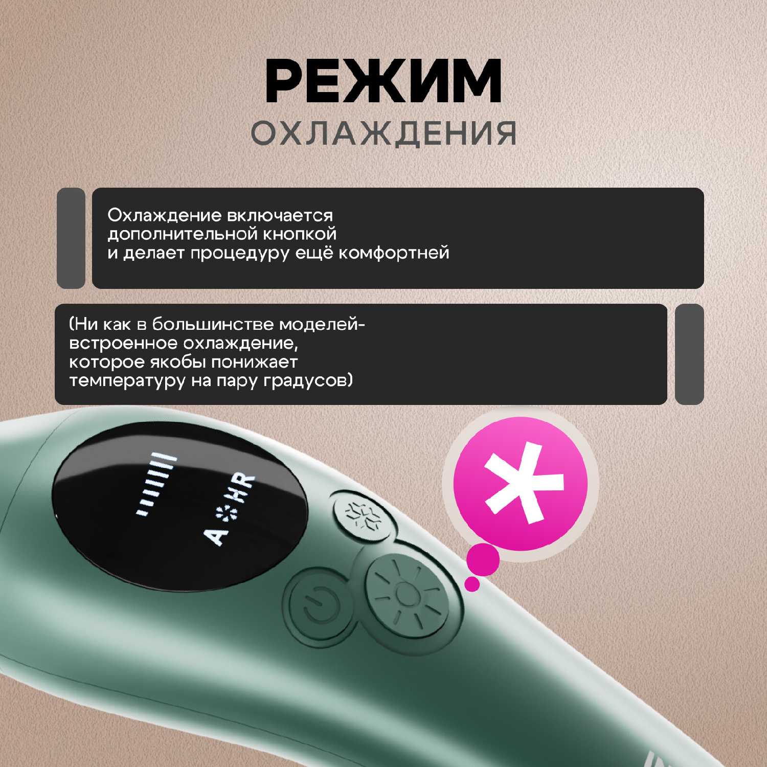 Встроенный вентилятор создает интенсивный поток воздуха, моментально охлаждающий кожу после вспышки. Пользователи особо отмечают этот параметр – он предотвращает покраснения и снижает дискомфорт. Однако некоторые отмечают, что при длительной работе охлаждение может быть чрезмерно сильным ("обжигает холодом"). -