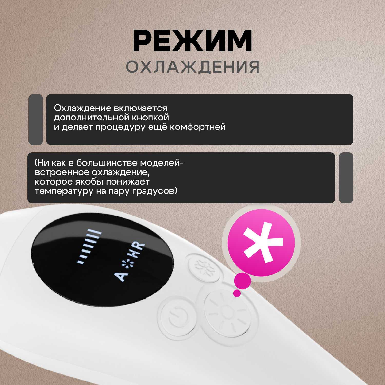 Ощущения варьируются от легкого покалывания до умеренного жжения на максимальной мощности, но большинство пользователей сравнивают дискомфорт с "щелчком резинки". Режим активного охлаждения снижает болезненность, а при правильном прилегании металлической платформы к коже (без касания лампы) неприятные ощущения минимизируются. Для чувствительных зон рекомендуется использовать косметические охлаждающие средства после сеанса. -