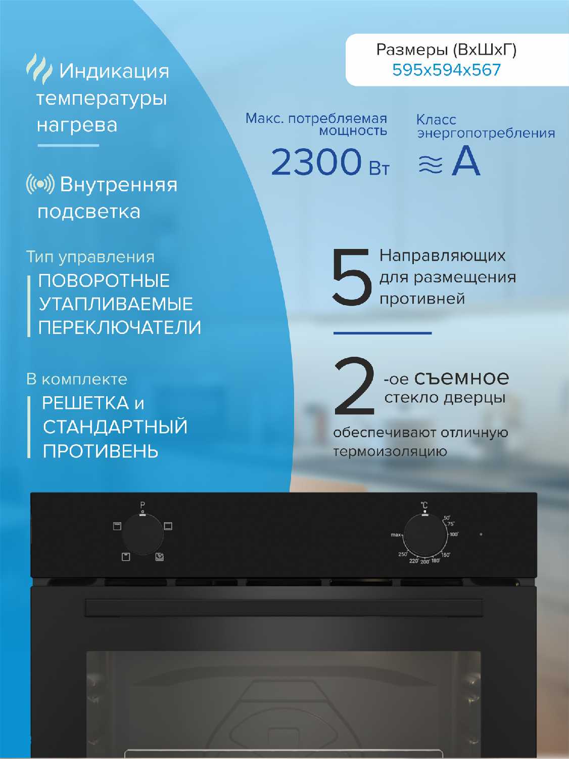 - Стабильное поддержание заданной температуры гарантирует идеальную прожарку мяса и выпечки.