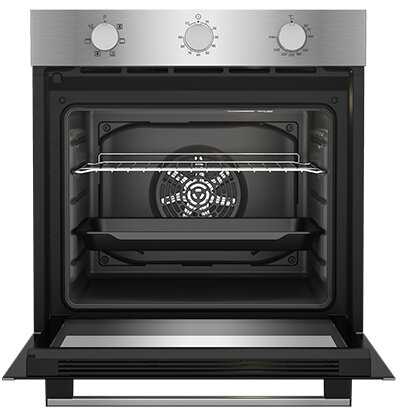 - Конвекционный вентилятор обеспечивает циркуляцию горячего воздуха, что исключает необходимость переворачивать противень для равномерного пропекания блюд.