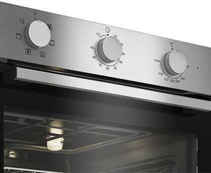 Функциональность и удобство управления: Управление осуществляется тремя утапливаемыми поворотными ручками, что пользователи оценивают как интуитивно понятное и надежное решение по сравнению с сенсорными панелями, склонными к поломкам. Механический таймер выполняет исключительно сигнальную функцию, громко оповещая об окончании установленного времени, но не отключая нагрев автоматически, что требует ручного вмешательства и не позволяет оставлять духовку без присмотра на длительный период. В некоторых экземплярах наблюдалась некорректная работа таймера — остановка на определенном значении (например, 25 минутах) или постепенное отставание от реального времени. Духовой шкаф оснащен основными режимами нагрева: верхний, нижний, комбинированный, гриль, конвекция, а также дополнительными функциями — разморозки и паровой очистки. Режим конвекции высоко оценен за улучшение качества выпечки и равномерность приготовления. Функция гидролизной очистки (паром) получила противоречивые отзывы: часть пользователей сочла ее неэффективной, в то время как другие удовлетворились результатом. Яркая внутренняя подсветка и большое стекло дверцы обеспечивают хорошую видимость процесса готовки без необходимости открывания.