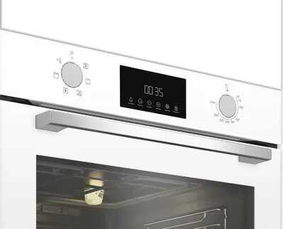 Функциональность и удобство управления выделяются как сильные стороны духового шкафа. Пользователи ценят наличие шести основных режимов работы, которые покрывают большинство кулинарных задач, включая выпечку, гриль и разогрев. Механическое управление с помощью поворотных переключателей и яркого цифрового дисплея оценивается как интуитивно понятное и простое, с ним легко справляются даже пожилые люди. Наличие таймера с точностью до секунд и встроенных часов добавляет удобства в процесс приготовления. Утапливаемые ручки управления являются дополнительным плюсом с точки зрения безопасности, особенно для семей с маленькими детьми, а также эстетики, так как не выступают за габариты панели. Подсветка камеры достаточно яркая, чтобы можно было контролировать процесс приготовления, не открывая дверцу и не выпуская тепло. Функция паровой очистки существенно облегчает уход за внутренней поверхностью, хотя некоторые пользователи отмечают, что для удаления сильных загрязнений все же требуется ручное мытье.