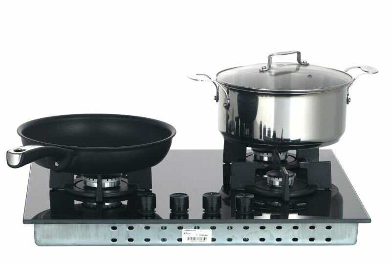 - Равномерное распределение пламени обеспечивает прогрев посуды без «холодных зон».