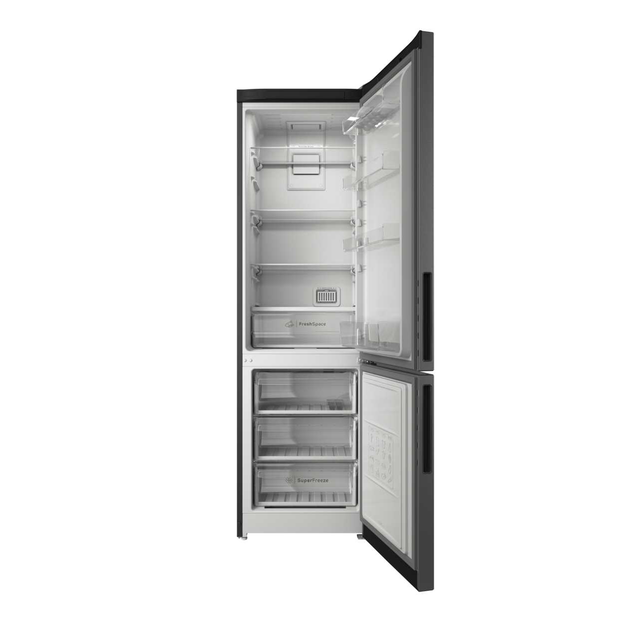 - Морозильная камера включает 3 вместительных ящика, включая зону для шоковой заморозки (до -34°C при закрытой заслонке).
