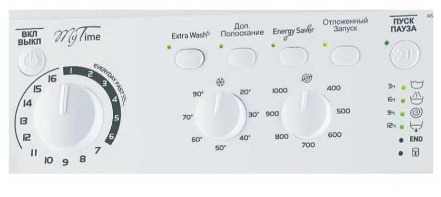 - - ручной выбор оборотов отжима и температуры