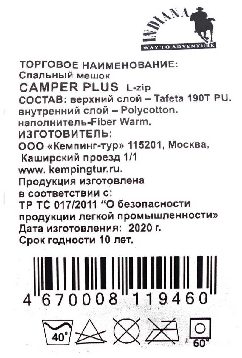 Отзывы о Спальный мешок Indiana Camper Plus R-zip от -12 °C одеяло с подголов. 195+35Х90см