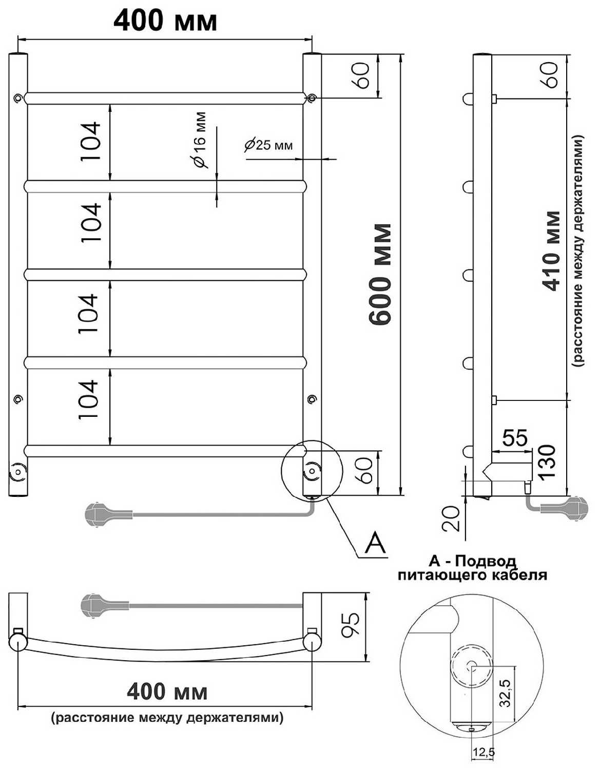 - + Аккуратный полотенцесушитель, очень гармонично вписался в небольшую ванную.