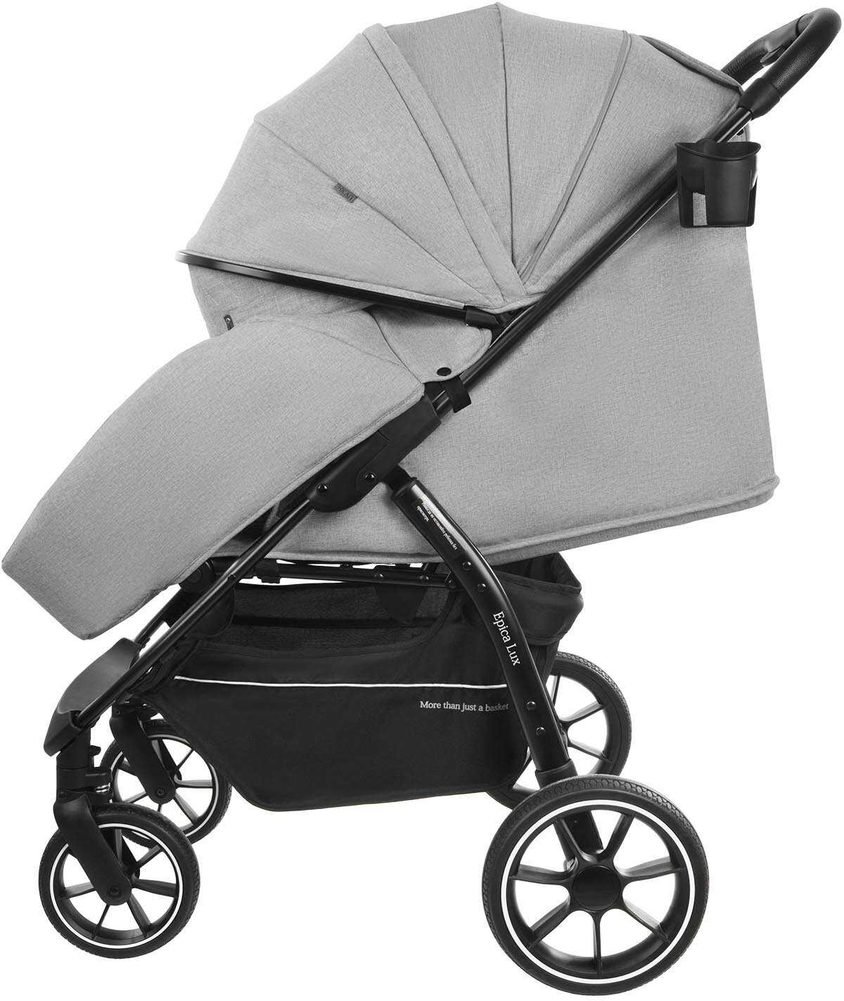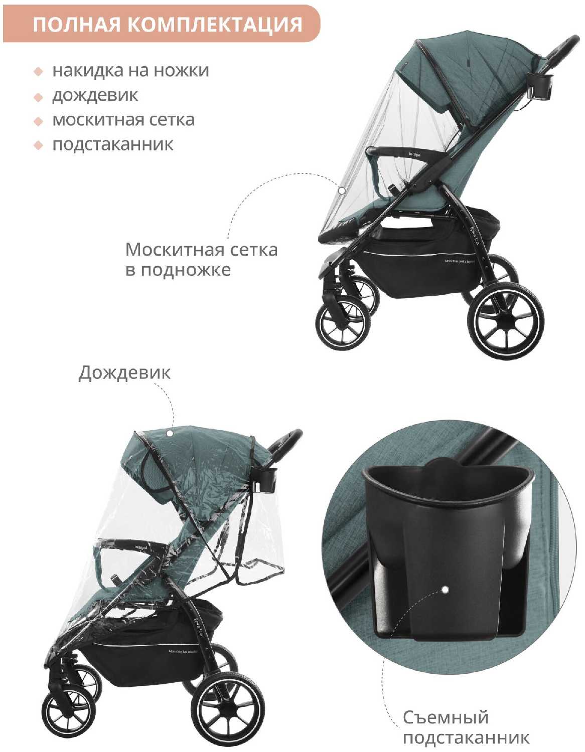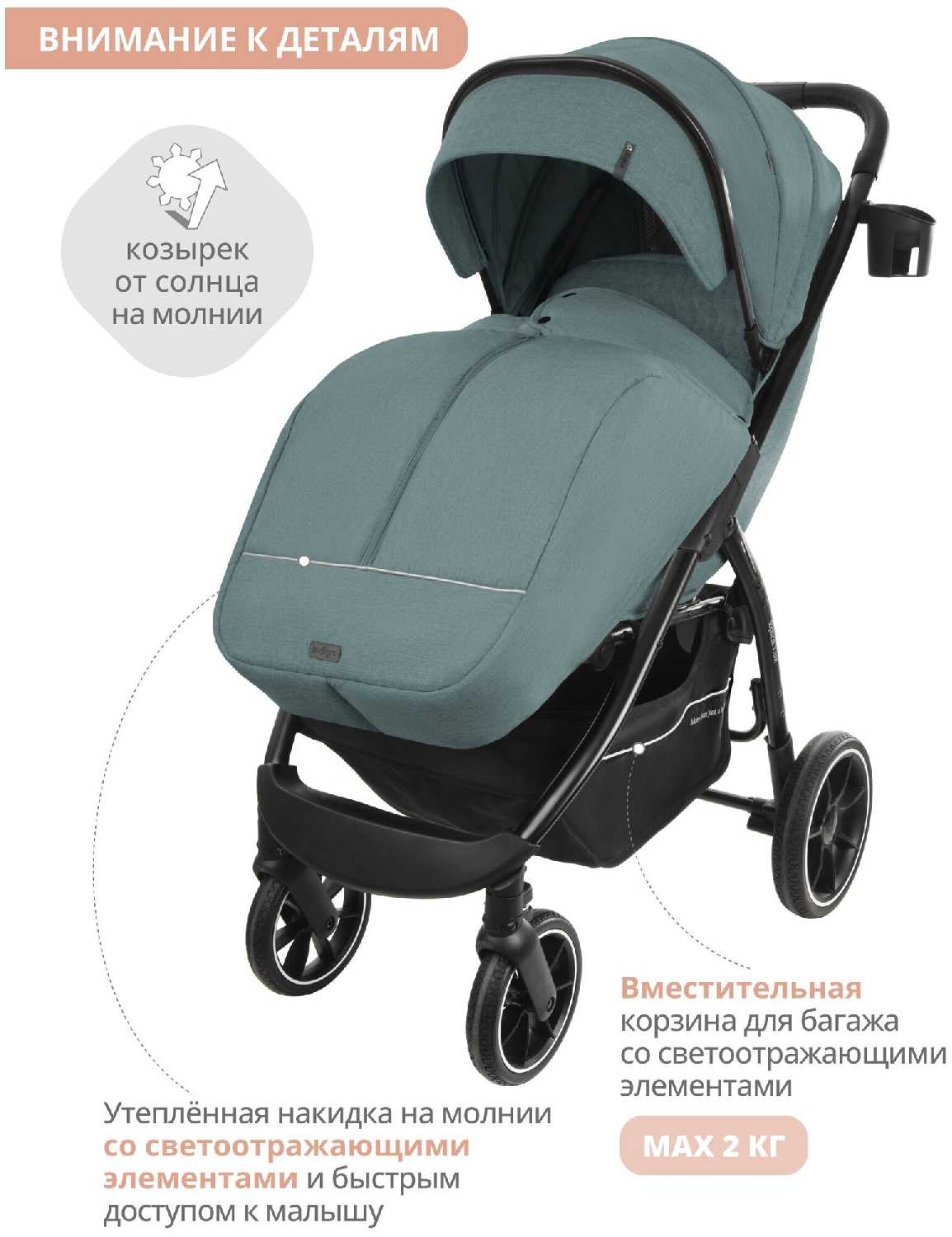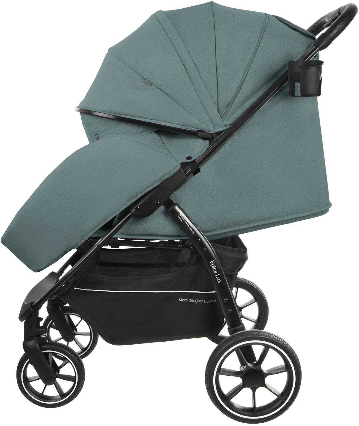 - + коляска легкая маневренная ,хорошо управляется плотный текстиль .