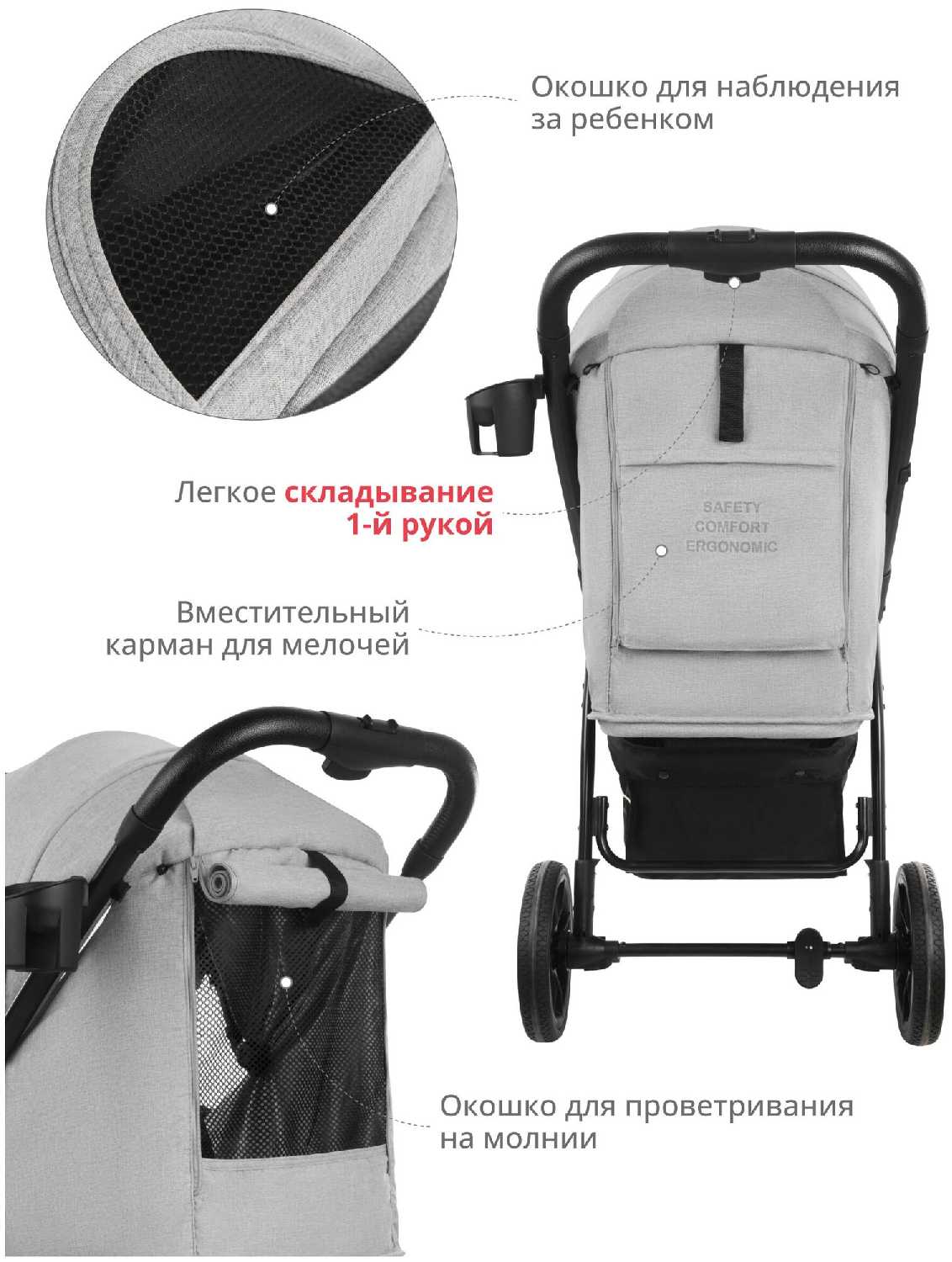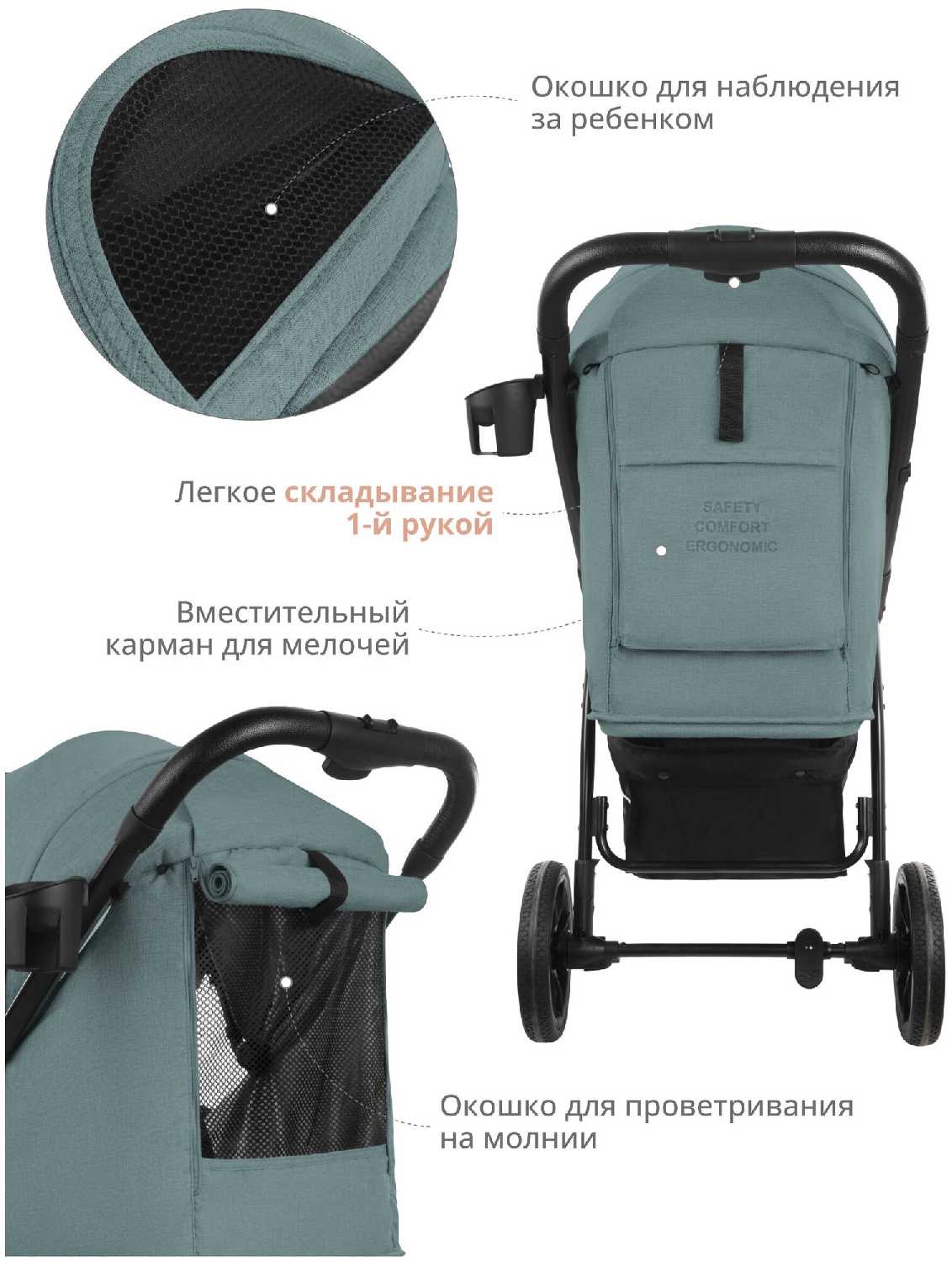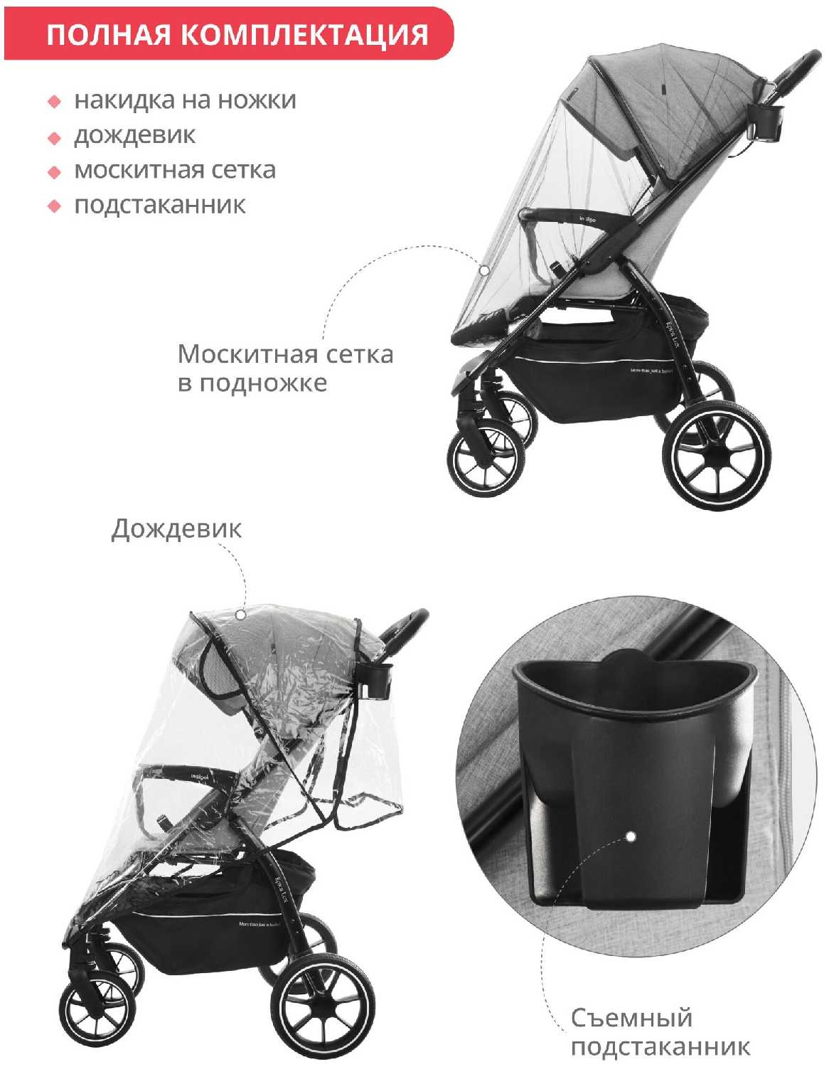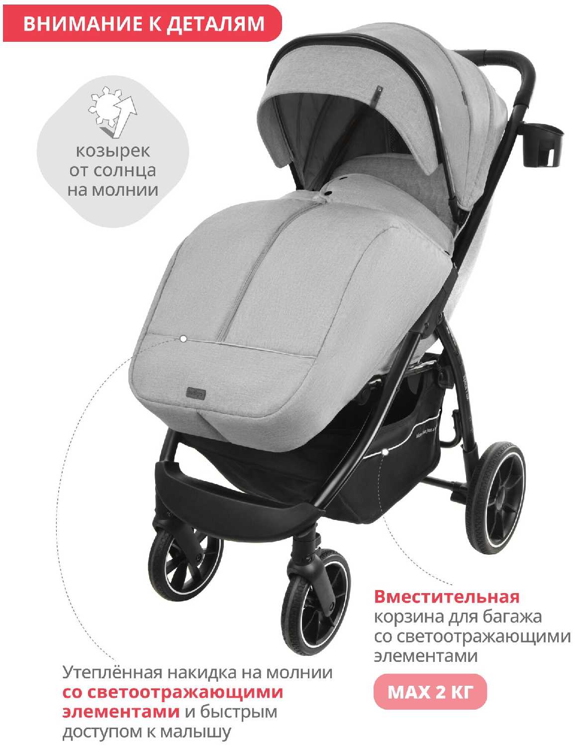 - + коляска легкая маневренная ,хорошо управляется плотный текстиль .