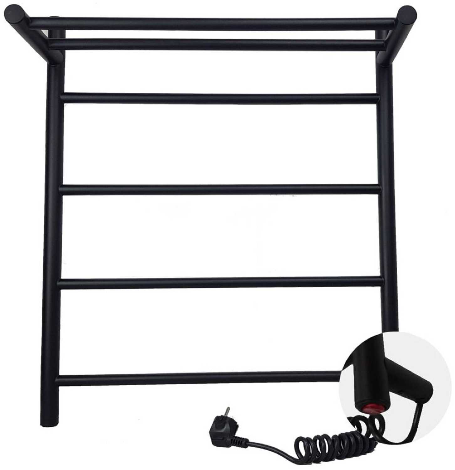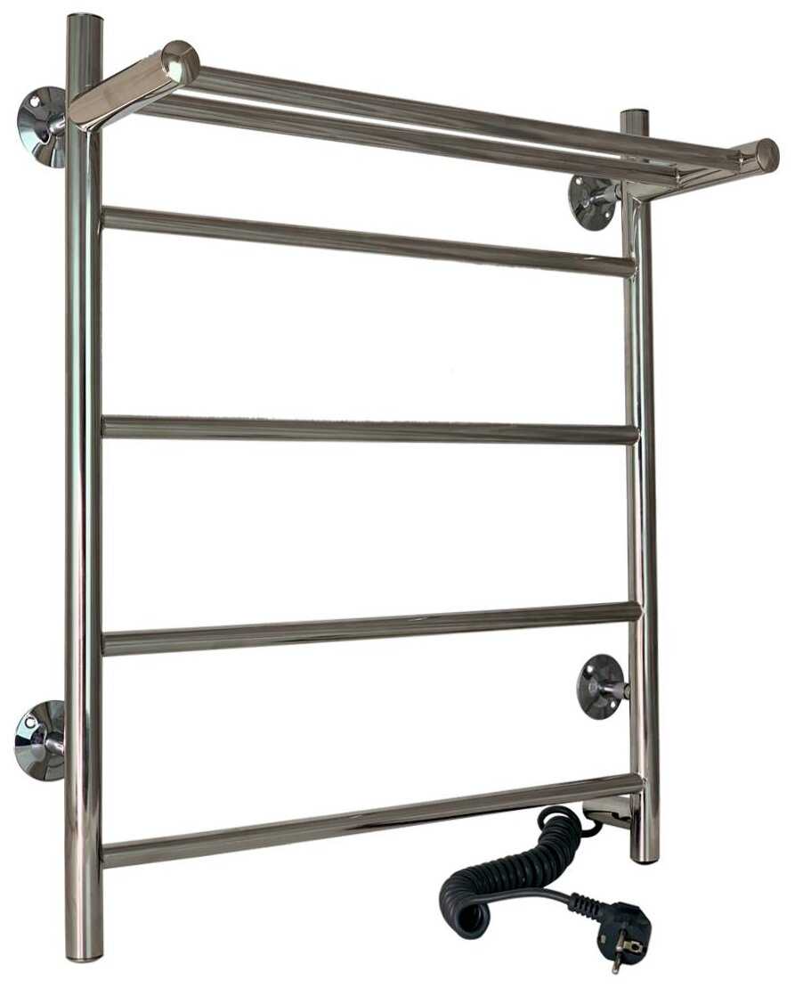 Нужен был полотенцесушитель, который работает от электросети. Купили с полкой, чтобы можно было хранить на ней уже высушенные вещи и полотенца. пользуемся ей постоянно, очень удобно, полотенца всегда под рукой, когда идешь в душ. Поверхность полотенцесушителя хромированная, так что ржавчина на ней не образовывается даже при постоянном контакте с водой. Ширина достаточно большая, так что вещей на перекладинах помещается много. Крепится на стену с помощью специальных фиксаторов. Получается надежно и не упадет.