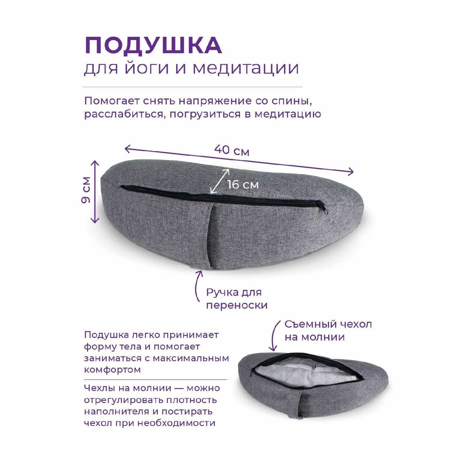 Комфортная подушка, которая помогает расслабиться во время медитации. Наполнитель из гречневой шелухи поддерживает спину и шею, удобно сидеть в любой позе. Удобно брать с собой на йогу.