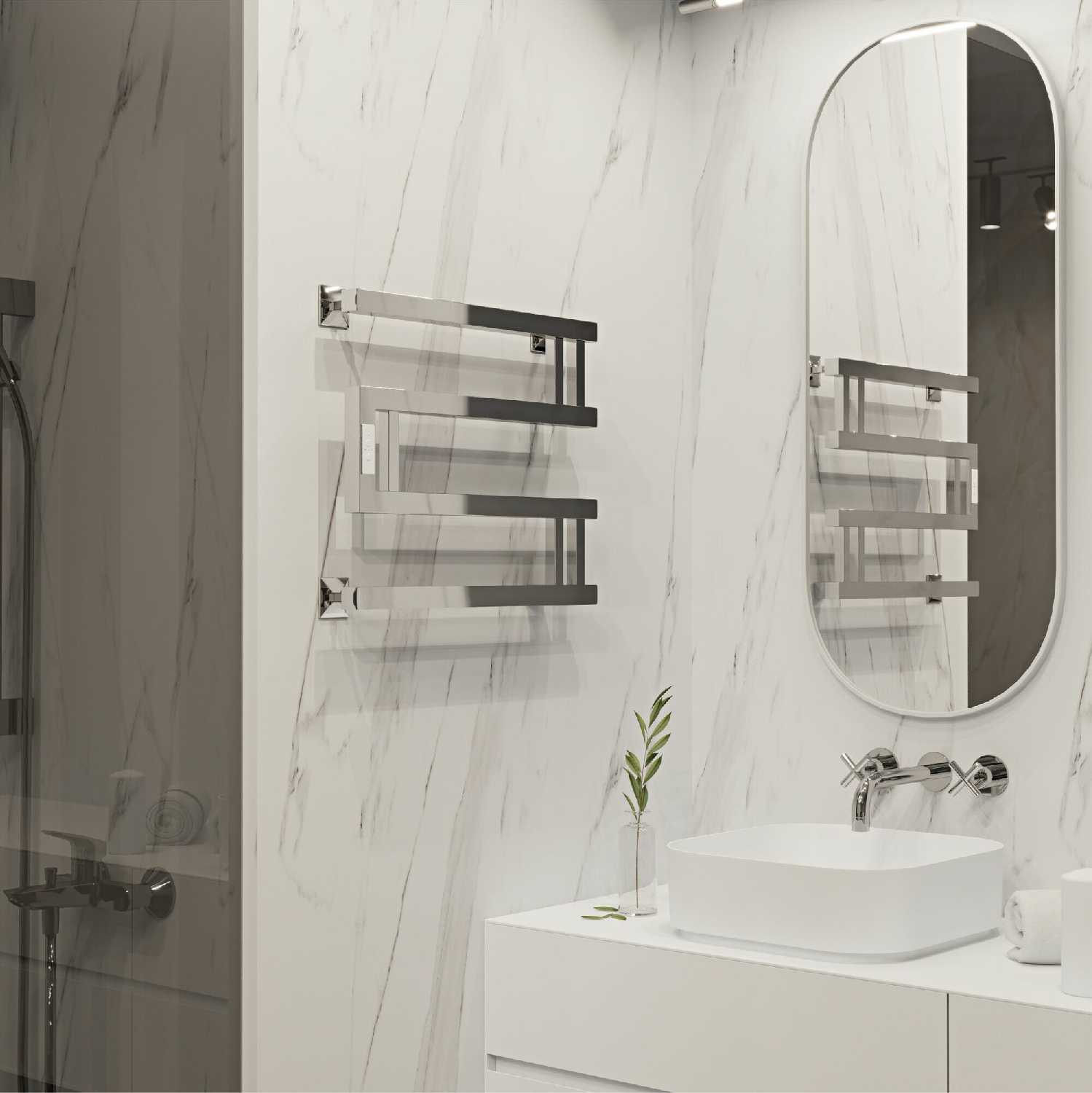 Превзошел все ожидания, отлично смотрится в интерьере, если в ванной прохладно, достаточно включить вечером с таймером на минимальный нагрев и утром заходишь в уют