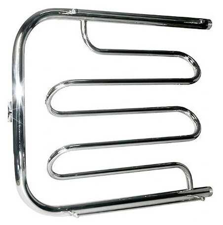 Такой полотенцесушитель выбран нами из-за того, что в нем есть дополнительные секции для вывешивания вещей на сушку. В нем много положительного: материал прочный, размер очень подходящий для маленького помещения санузла, красивое и легкое в уходе покрытие из хрома. Быстро можно подсоединить его к системе горячей воды, так как у него подходящий для стандартных труб диаметр соединения.