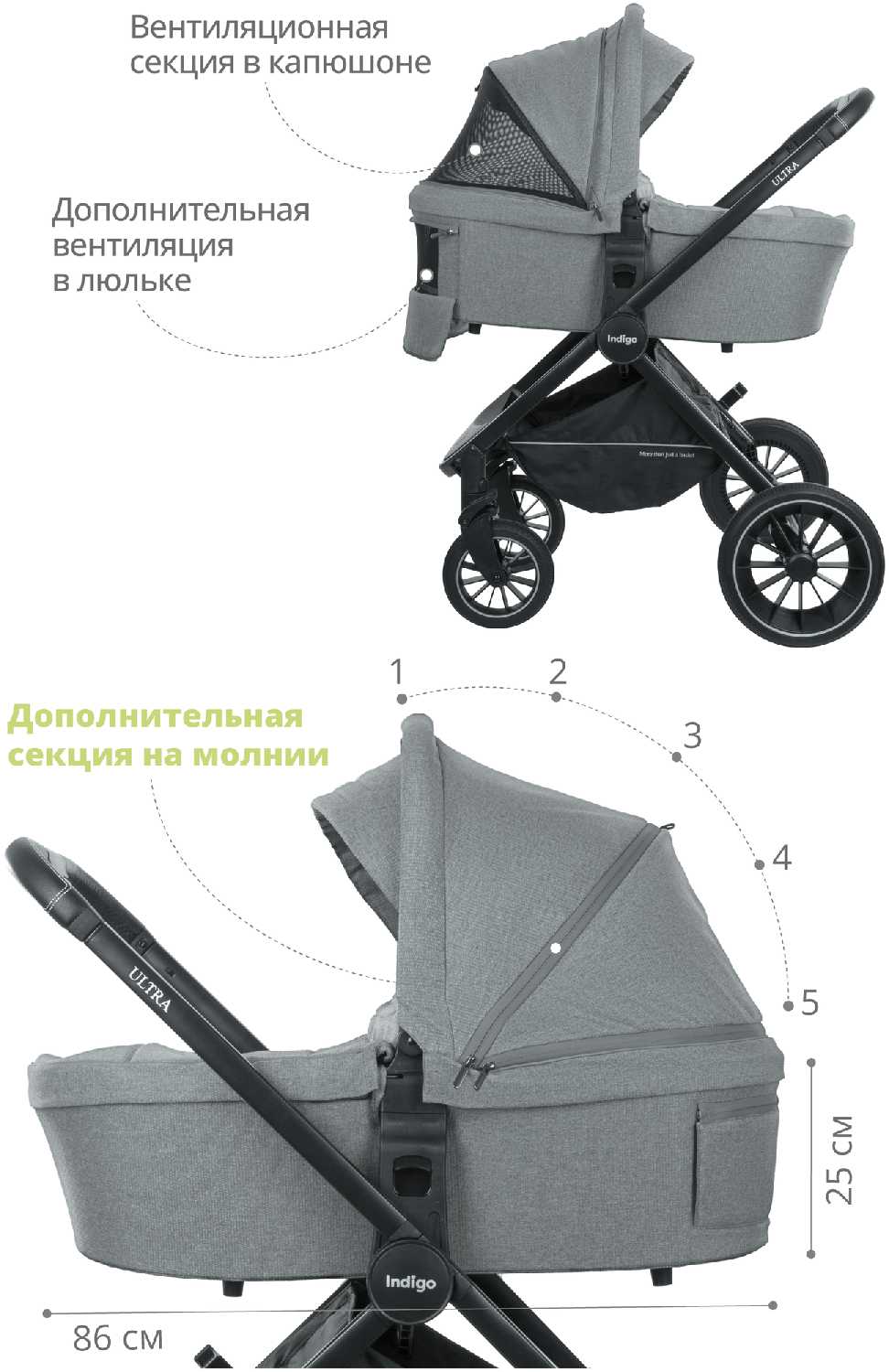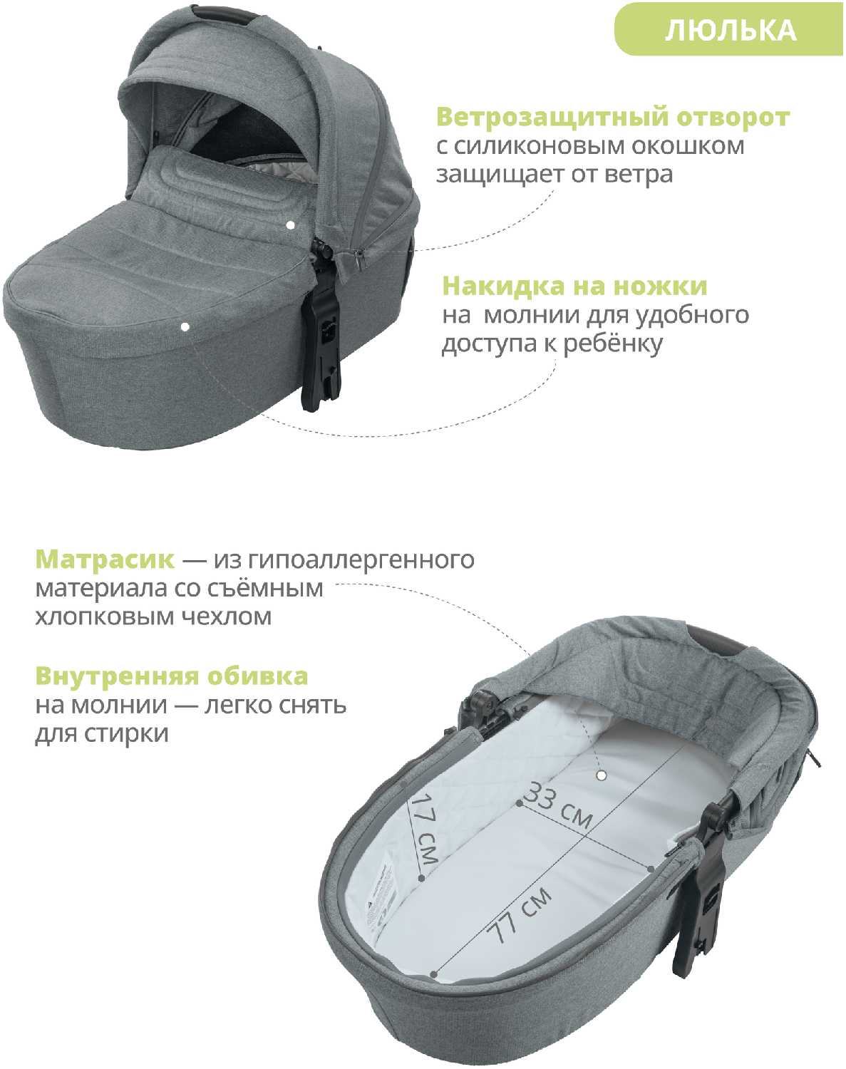| Ручки для переноски (люлька) : | жесткие |
