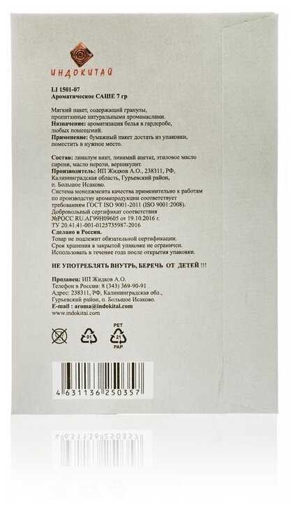 2 отзывов пользователей o Индокитай саше Свежее белье Свежесть 7 г.
