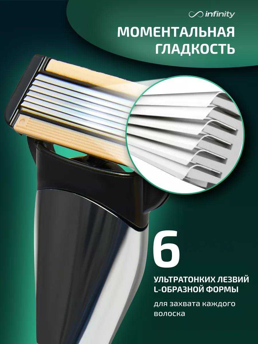 если честно то взял когда посмотрел ролик Даша Островская рекламировала типа альтернатива джилету ещё и дешевле, решил попробовать нашу российскую продукцию(хотя скорей всего делают в китае), скажу так бреет не плохо, главное от этой бритвы нет раздражения, сравниваю с джилетом мак 3, конечно одной кассеты джилета хватит на подольше мне его на месяца 2 минимум хватает если не больше, кассеты от Инфинити не могу сказать на сколько хватит пользую пока месяц и по ощущениям хватит не так надолго, но всё же она пока бреет(дополню отзыв через пару месяцев). Из минусов как по мне так это типа система которая не забивает лезвия, к ней надо привыкать, этим станком лучше брить короткую щетину, если длинную то мне не очень. не знаю есть ли от Инфинити бритвы с тремя лезвиями или нет я не искал вот они я думаю для меня были предпочтительней, кстати если сравнивать с джилет фьюжен где тоже 5 лезвий, наверное +- одинаковые
