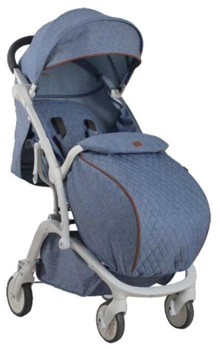 - + Издалека и на фото выглядит красиво. У нас была серая с голубым. Очень вместительная корзина. Раскладывающаяся на 170 спинка. Крепкая конструкция. Узкое шасси и небольшая общая длина. Довольно высокая ручка. Поворотное переднее колесо. Легко отстирать текстиль. Едет по брусчатке, снегу, гравию, траве - в общем по умеренному бездорожью.