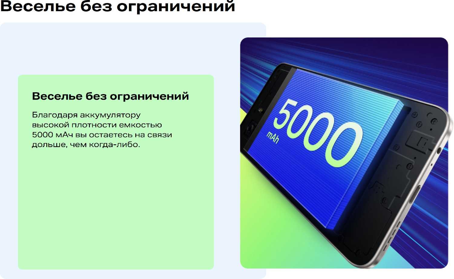 - Батарея на 5000 мАч держит заряд до 1,5–2 суток при умеренном использовании: