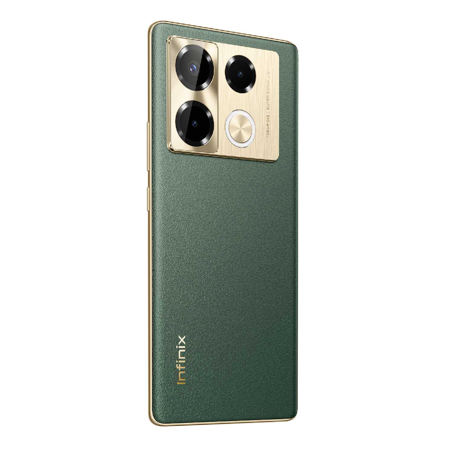 Infinix Note 40 Pro 4G отличается современным дизайном с использованием премиальных материалов. Корпус устройства имеет покрытие из веганской кожи, что придает ему стильный и дорогой вид. Смартфон выпускается в двух цветах: Vintage Green и Titan Gold. Его габариты составляют 164.4 x 74.6 x 7.8 мм, а вес - 190 г, что делает его достаточно удобным в использовании (PhoneDady).
