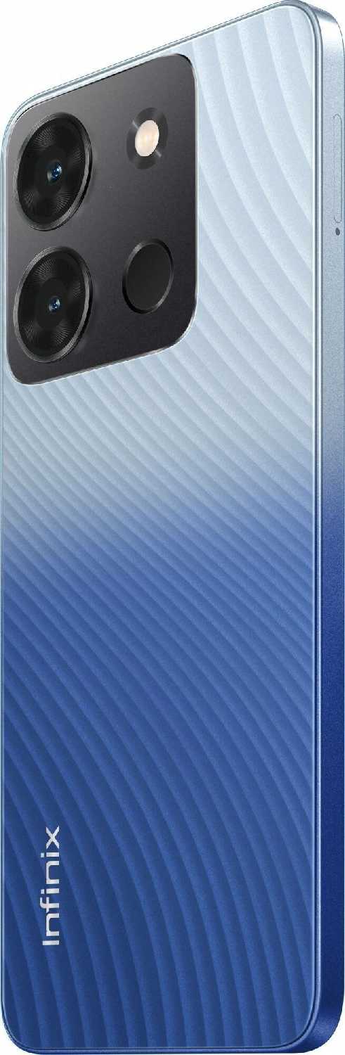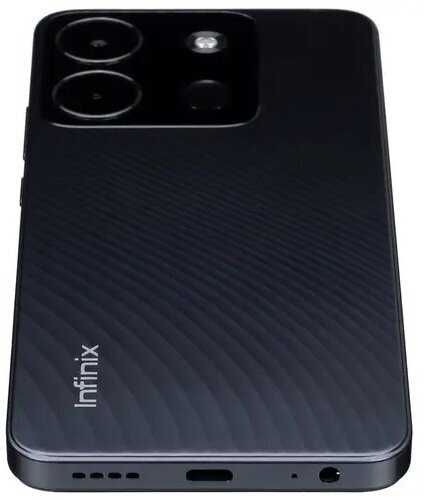 Infinix Smart 7 Plus выглядит достаточно стильно для своего ценового сегмента. Корпус выполнен из пластика, но его текстурированная поверхность придает смартфону дорогой вид. Устройство доступно в нескольких цветовых вариантах, таких как черный, зеленый и синий, что позволяет выбрать наиболее подходящий для вашего стиля.