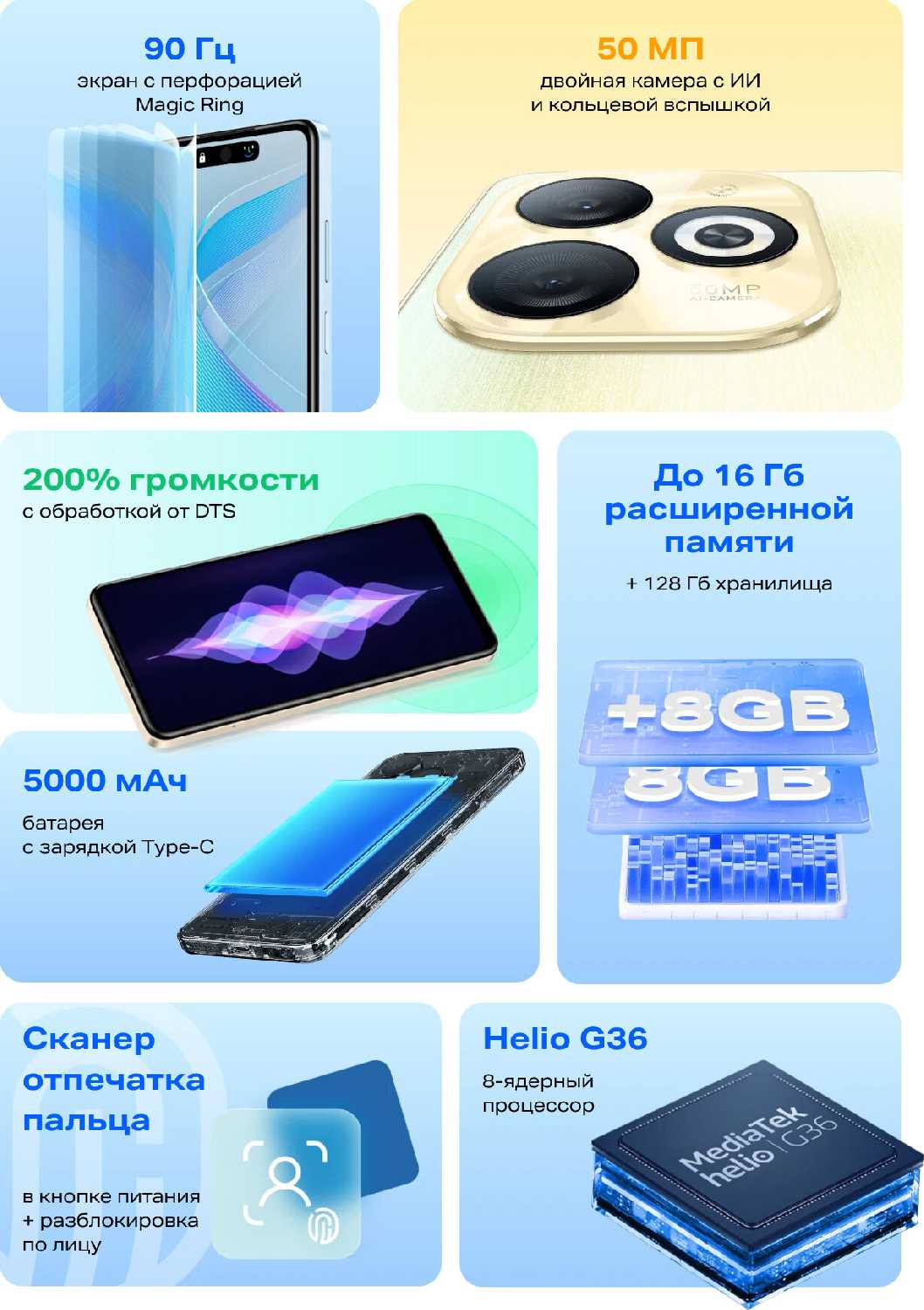 - Технические параметры (процессор MediaTek Helio G36, 90 Гц экран) обеспечивают отзывчивость интерфейса.
