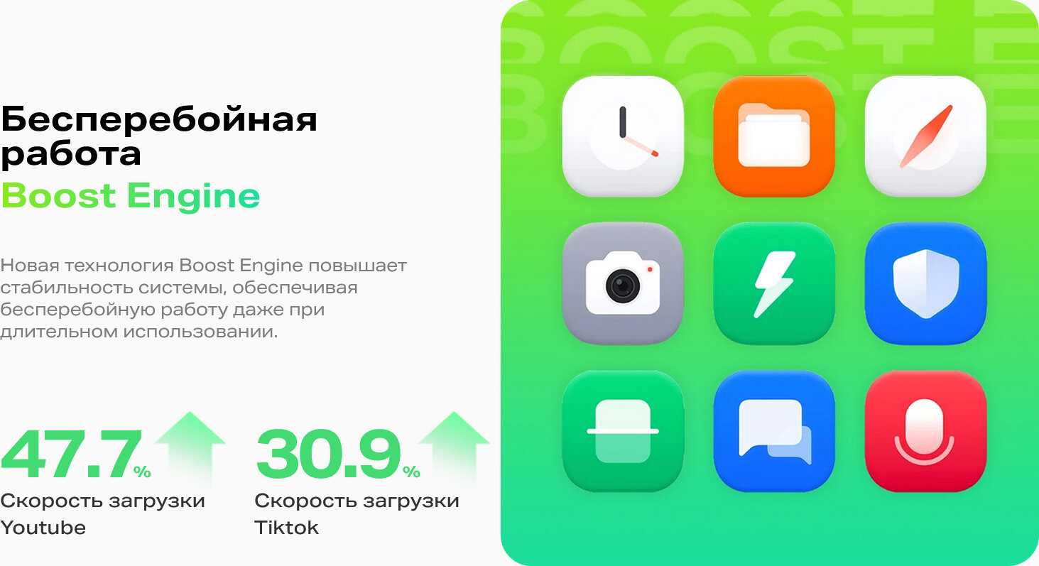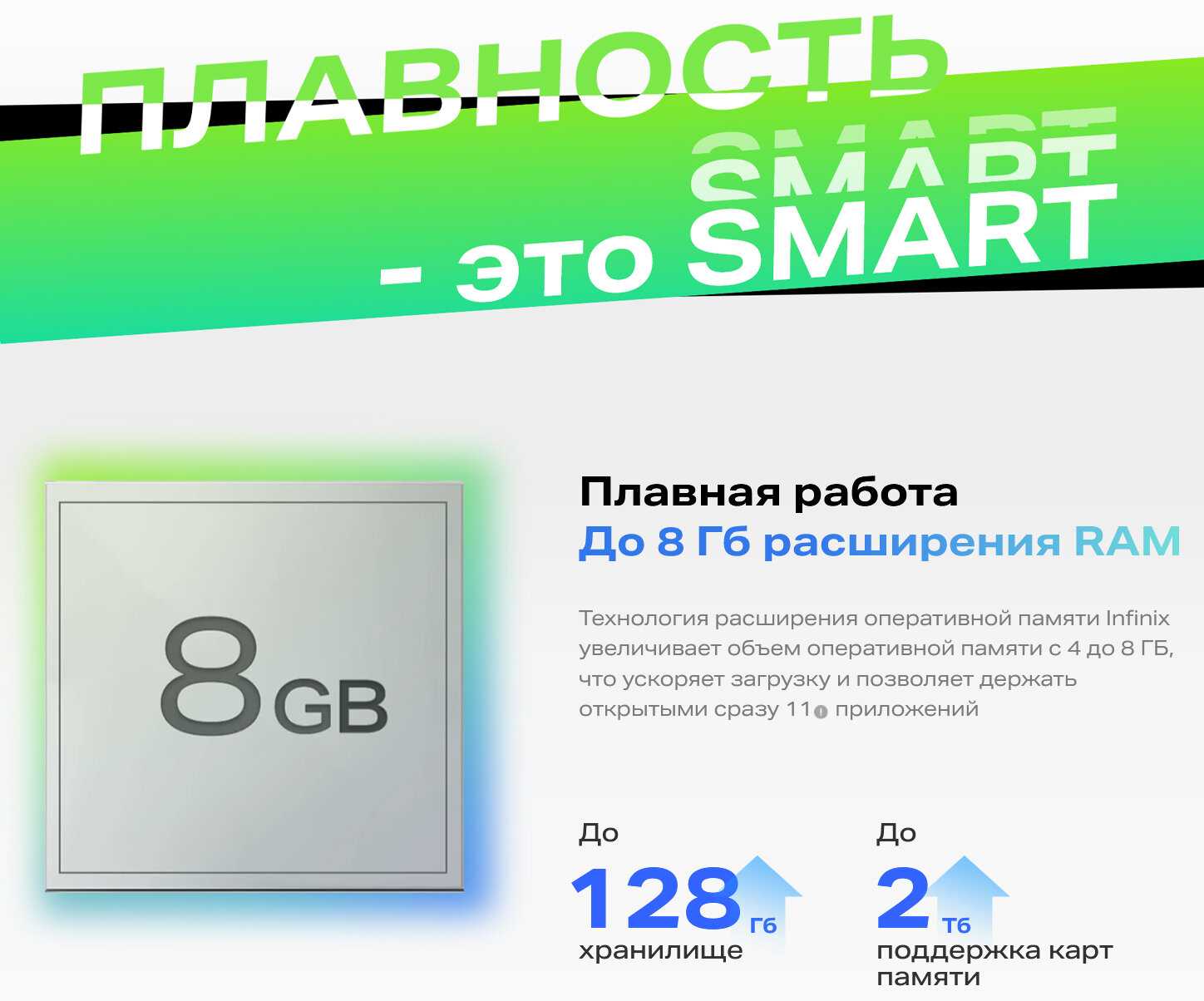 - Функция «Виртуальная оперативная память» увеличивает производительность за счёт внутреннего накопителя.