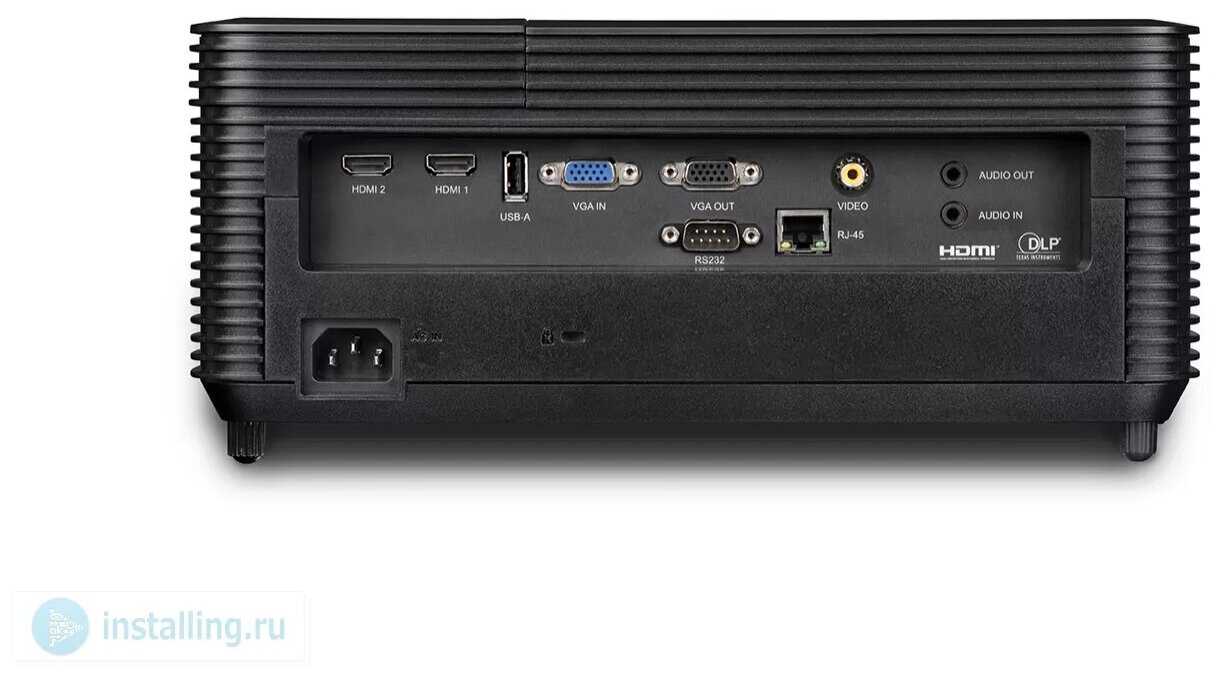 Ethernet, вход аудио mini jack 3.5 mm, вход видео композитный, вход HDMI x 3, RS-232, USB Type-A, вход VGA