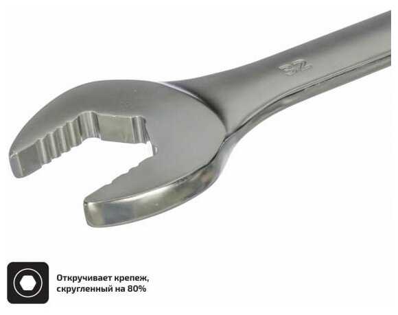 Дополнительная информация : | длина 360 мм, покрытие хромирование, количество граней кольцевой головки 12, класс товара профессиональный |