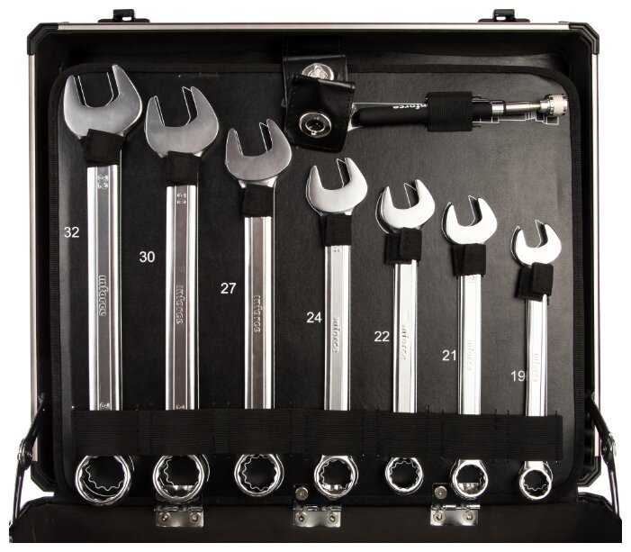 Гаечные ключи подробно : | Комбинированные ключи – 6, 7, 8, 9, 10, 11, 12, 13, 14, 15, 16, 17, 19, 21, 22, 24, 27, 30, 32 мм. Разрезные ключи – 8×10, 9×11, 12×13, 14×17, 17×19 |